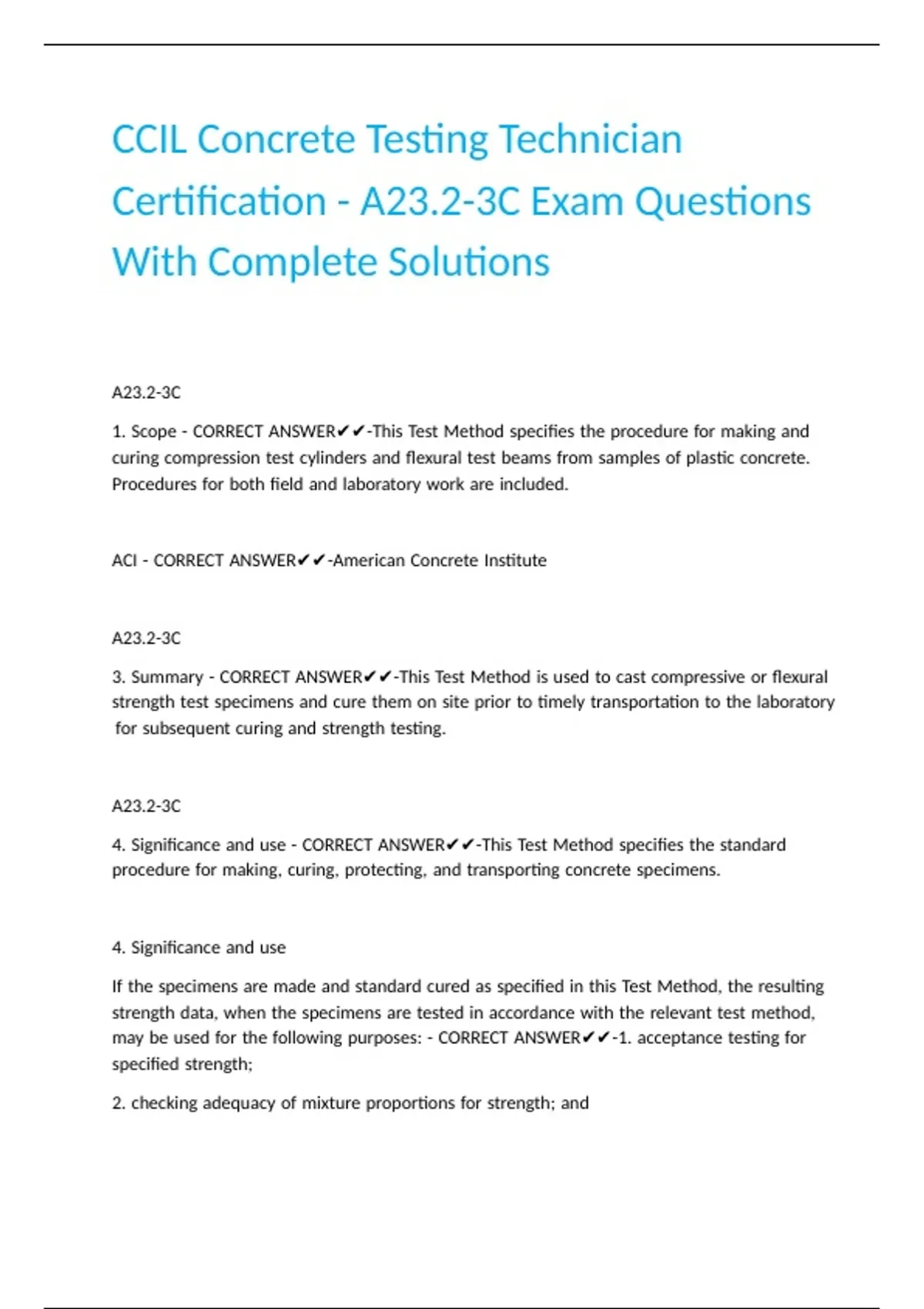 CCIL Concrete Testing Technician Certification - A23.2-3C Exam Questions With Complete Solutions