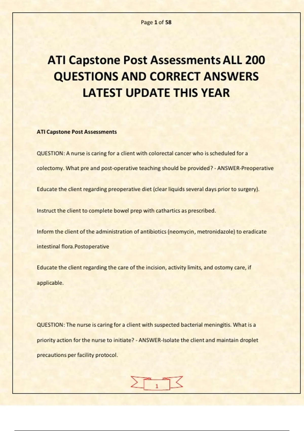 ATI Capstone Post Assessment COMPLETE QUESTIONS AND VERIFIED SOLUTIONS LATEST UPDATE THIS YEAR