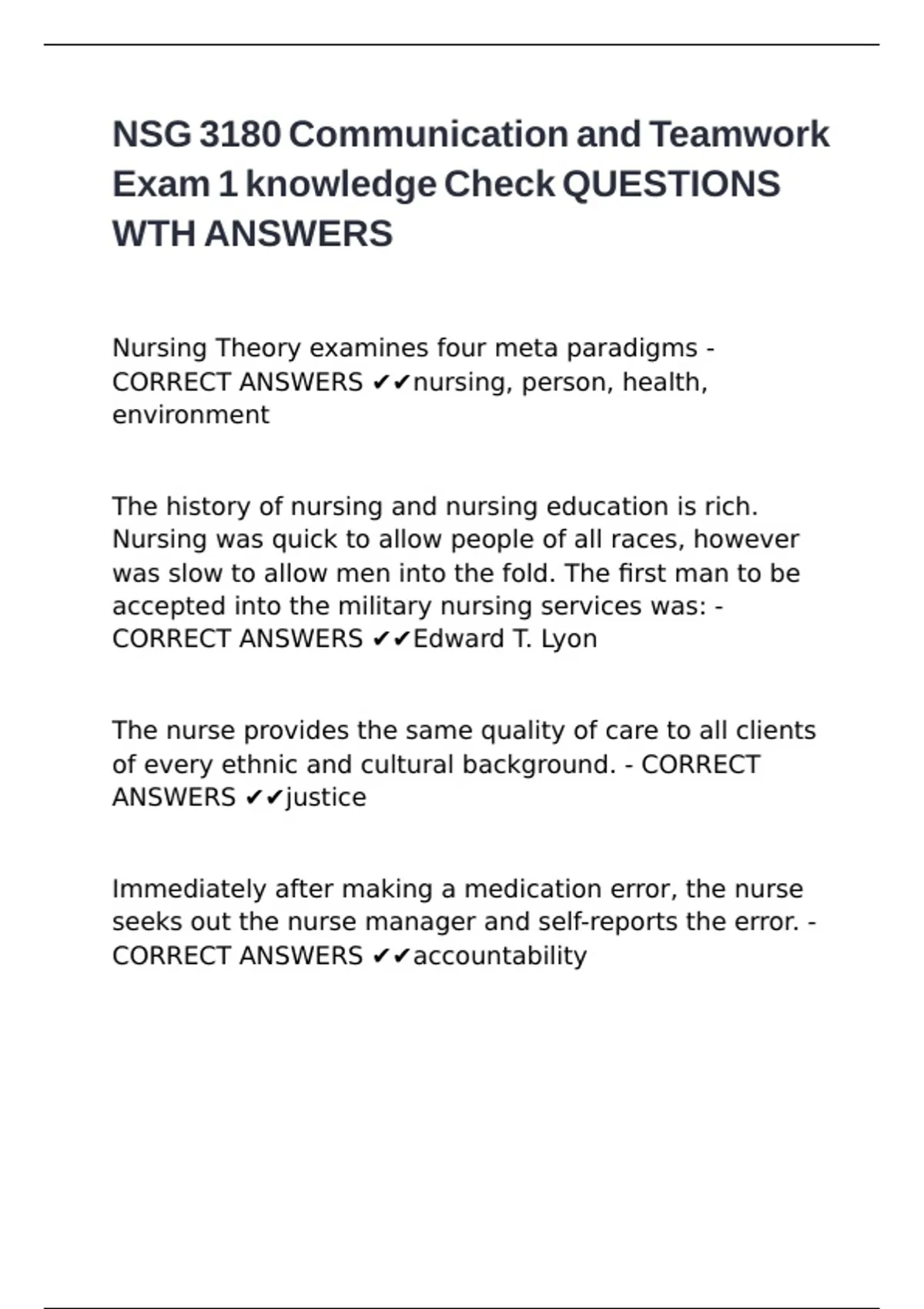 NSG 3180 Communication and Teamwork Exam 1 knowledge Check QUESTIONS WTH ANSWERS.