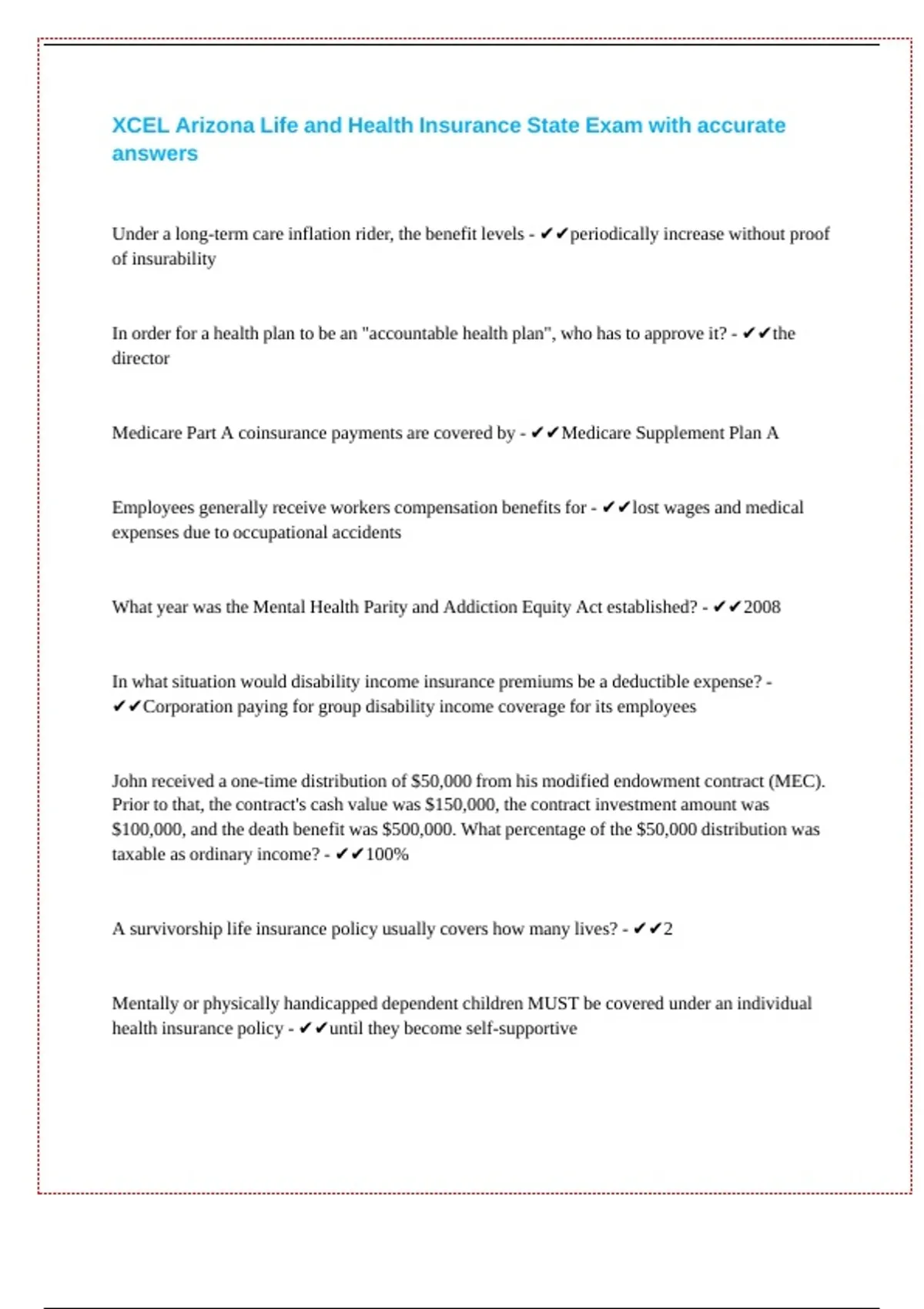 XCEL Arizona Life and Health Insurance State Exam with accurate