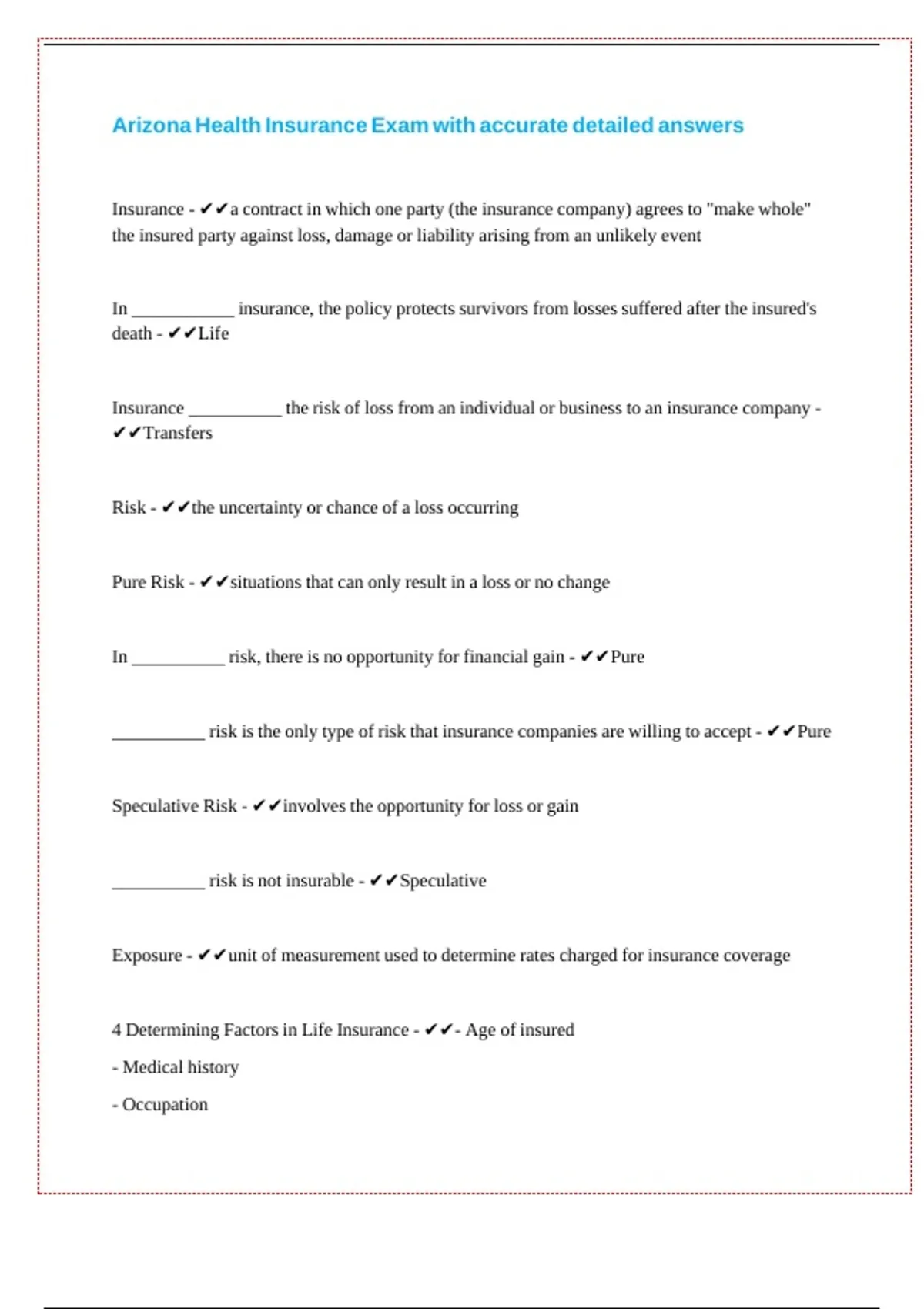 Arizona Health Insurance Exam with accurate detailed answers