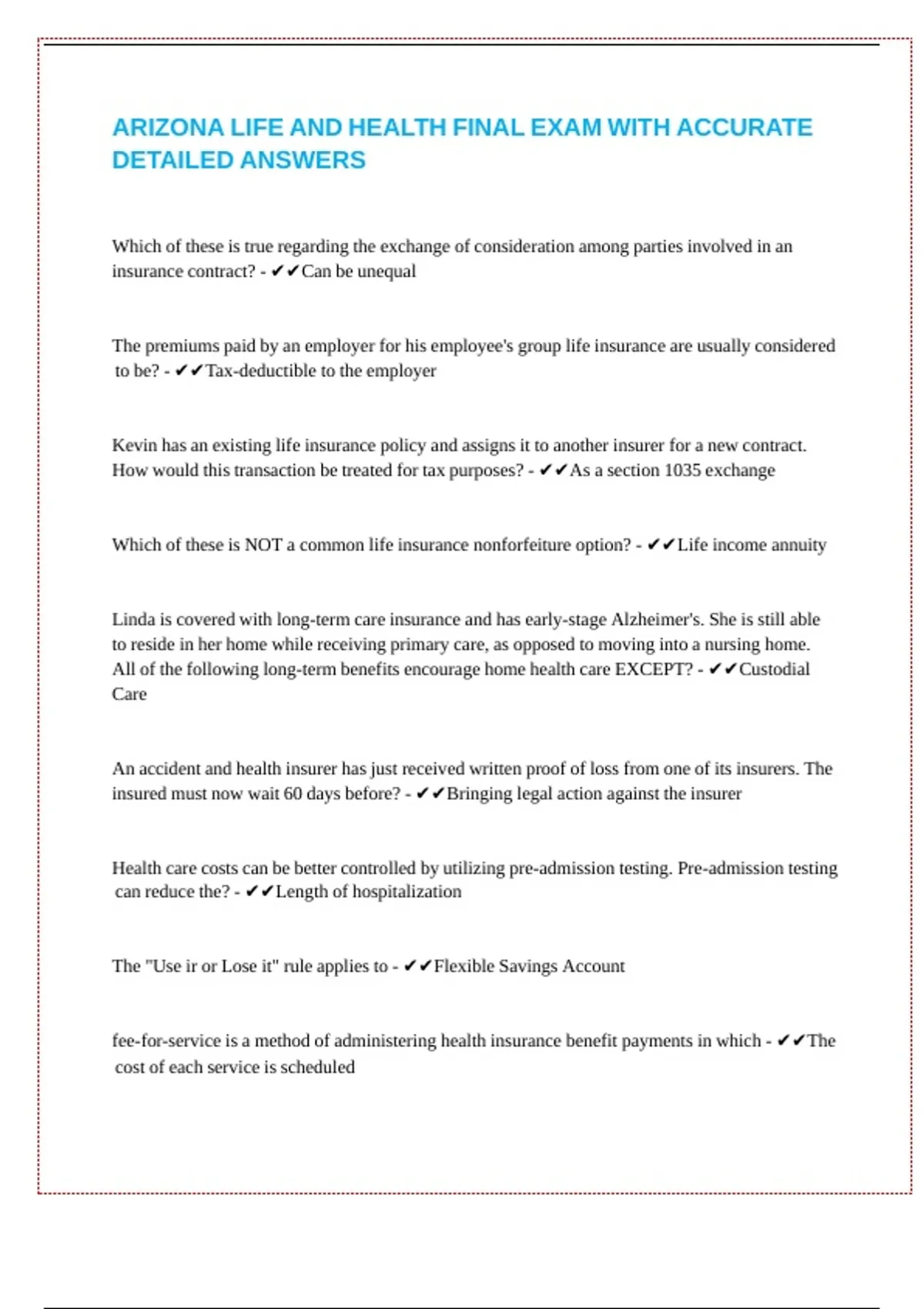 ARIZONA LIFE AND HEALTH FINAL EXAM WITH ACCURATE DETAILED ANSWERS