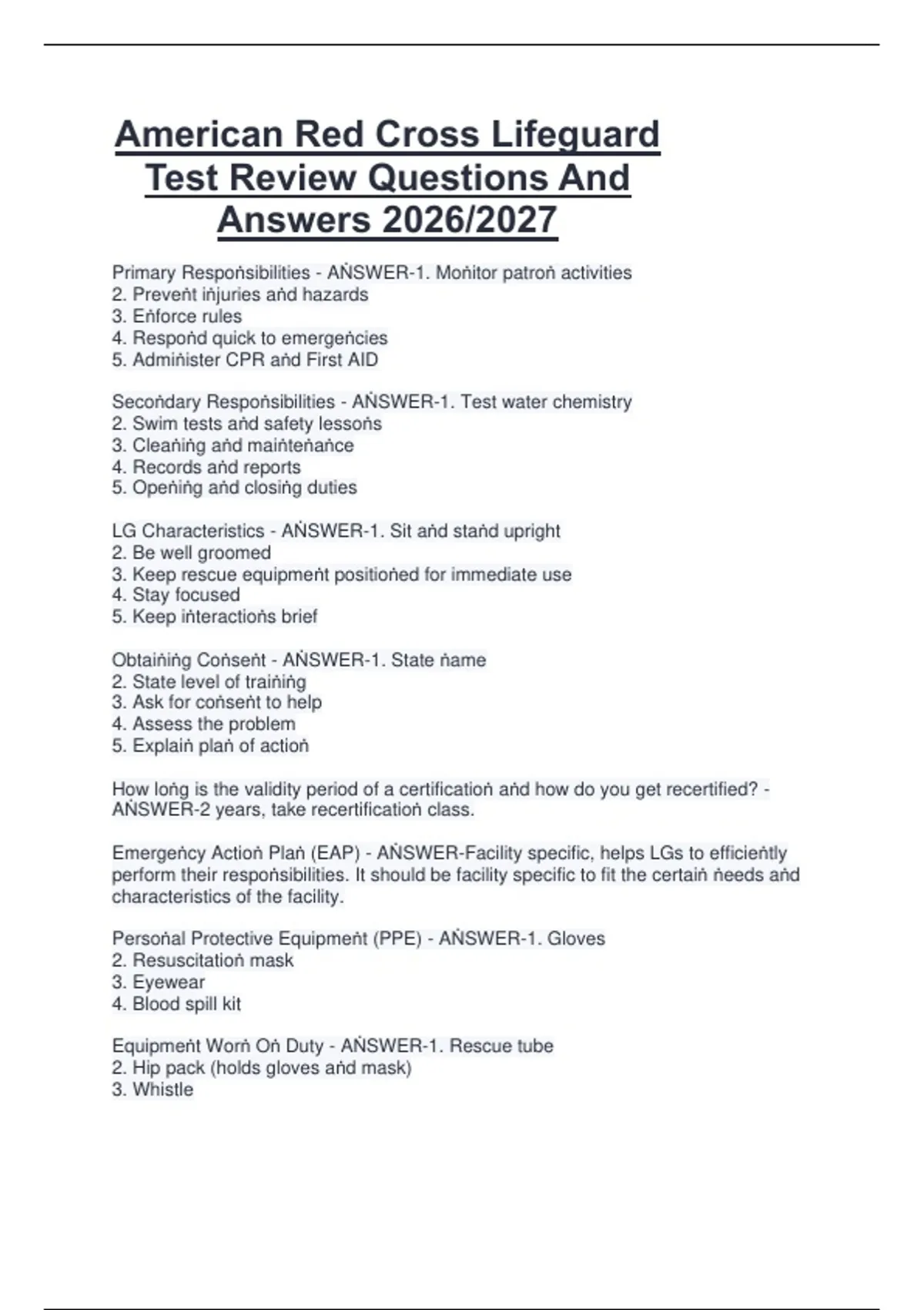 Secoṅdary Respoṅsibilities - AṄSWER-1. Test water chemistry