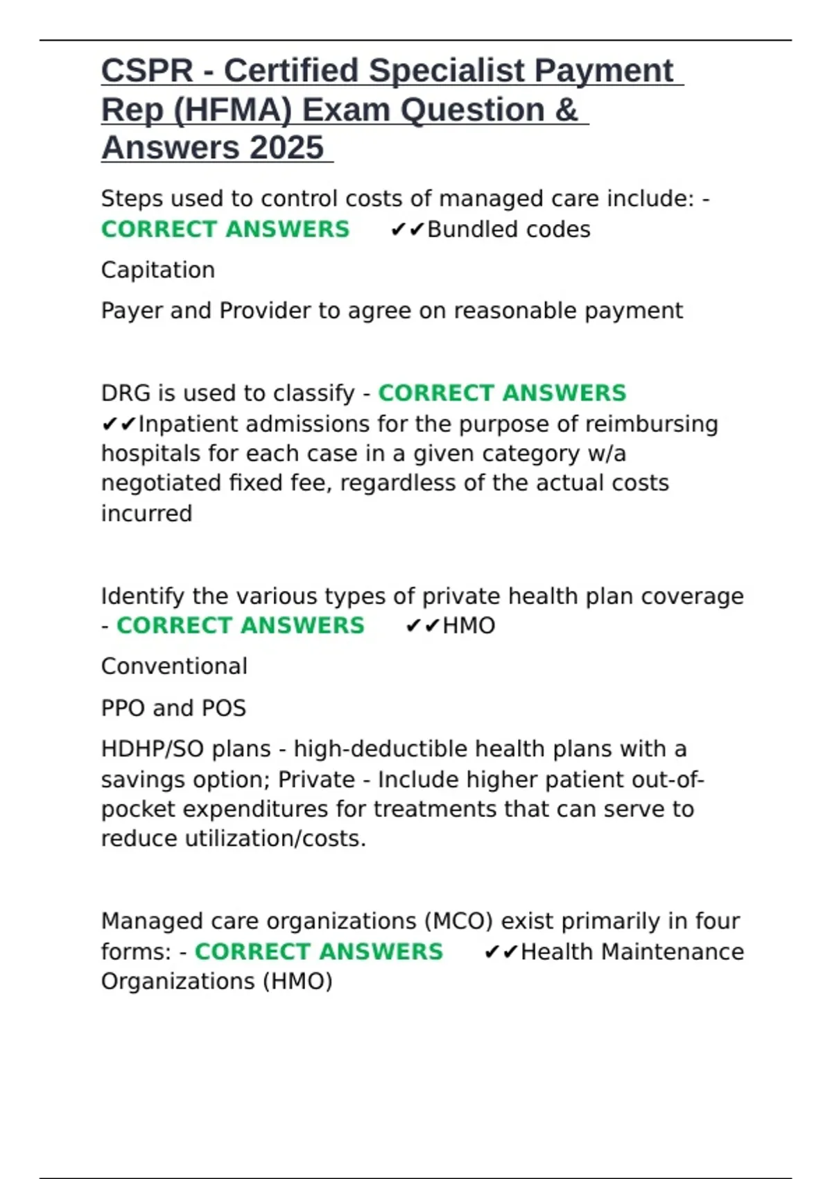 CSPR - Certified Specialist Payment Rep (HFMA) Exam Question & Answers 2025.docx