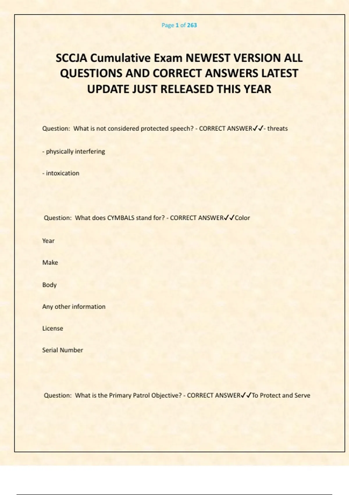 SCCJA Cumulative Exam NEWEST VERSION ALL