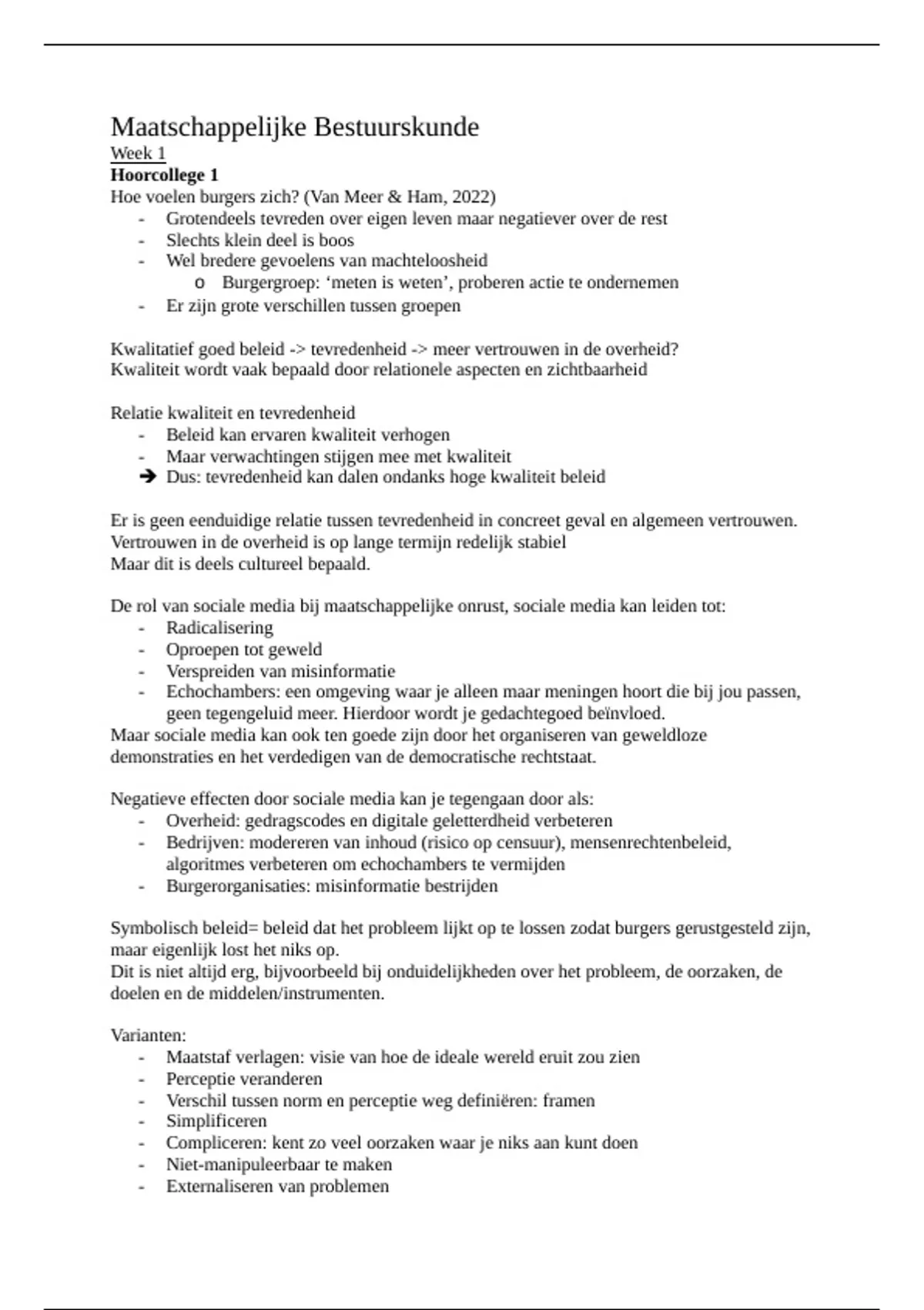 Hoe voelen burgers zich? (Van Meer & Ham, 2022)