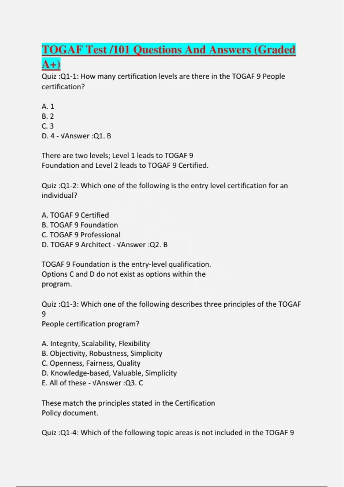 D. TOGAF 9 Architect - √Answer :Q2. B