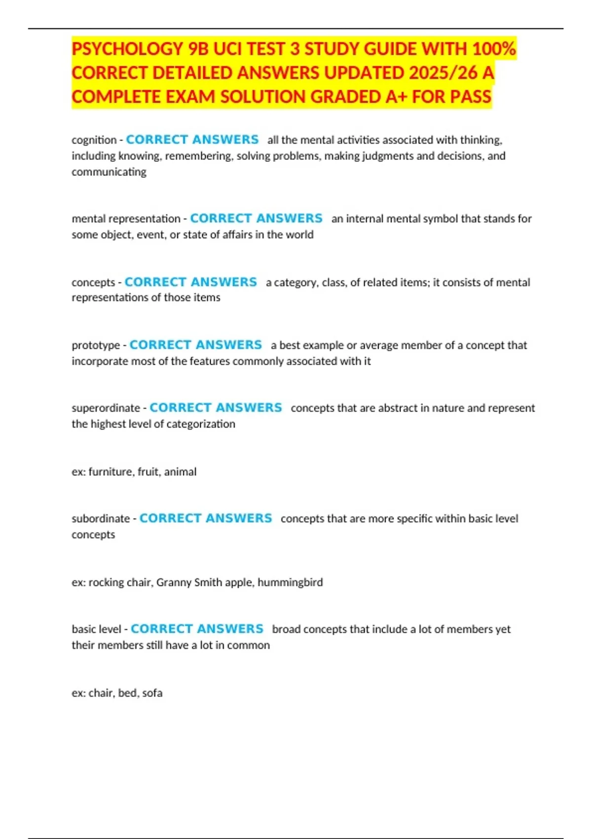 , PSYCHOLOGY 9B UCI TEST 3 STUDY GUIDE WITH 100%