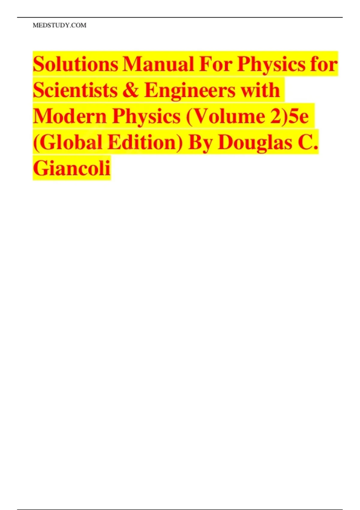 Solutions Manual For Physics for Scientists & Engineers with Modern Physics (Volume 2)5e (Global Edition) By Douglas C. Giancoli