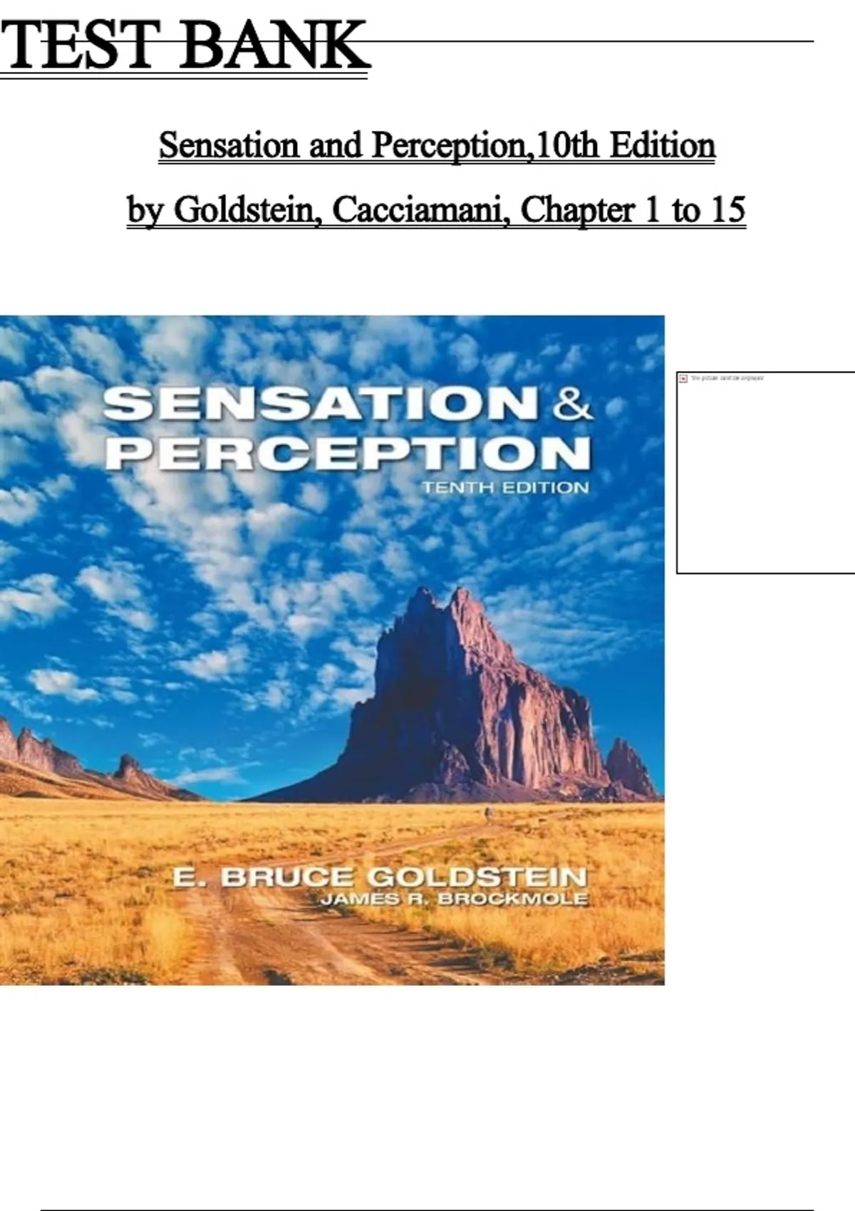TEST BANK Sensation and Perception,10th Edition by Goldstein, Cacciamani, Chapter 1 to 15