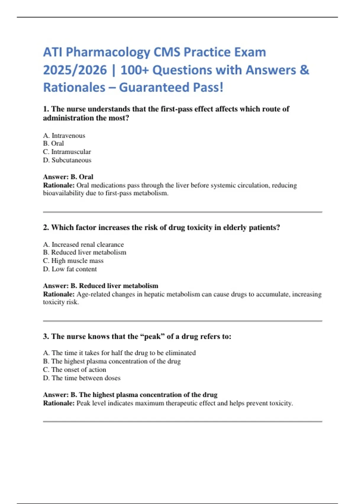 ATI Pharmacology CMS Practice Exam
