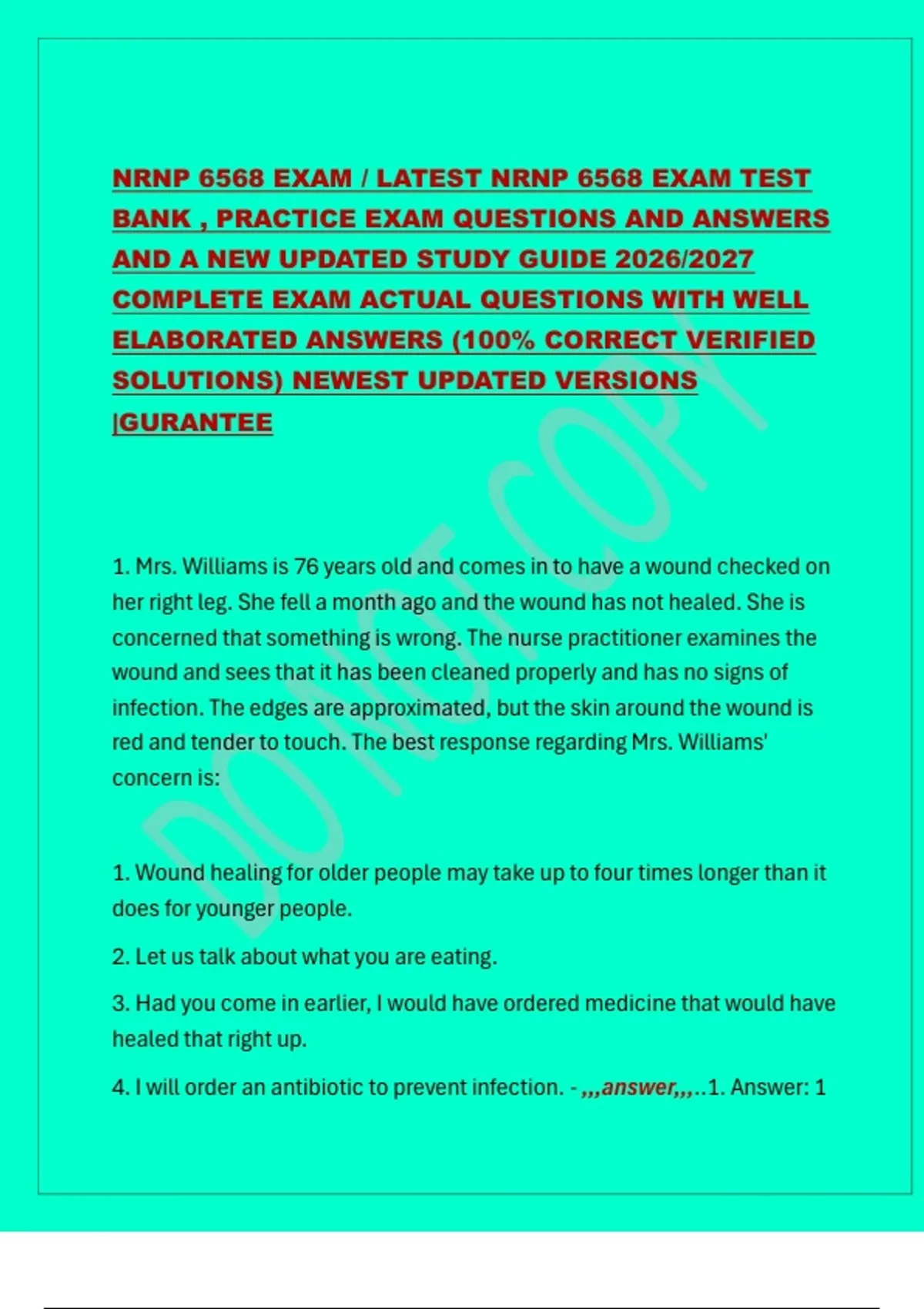 NRNP 6568 EXAM / LATEST NRNP 6568 EXAM TEST BANK , PRACTICE EXAM QUESTIONS AND ANSWERS AND A NEW UPDATED STUDY GUIDE 2026/2027 COMPLETE EXAM ACTUAL QUESTIONS WITH WELL ELABORATED ANSWERS (100% CORRECT VERIFIED SOLUTIONS) NEWEST UPDATED VERSIONS |GURANTEE