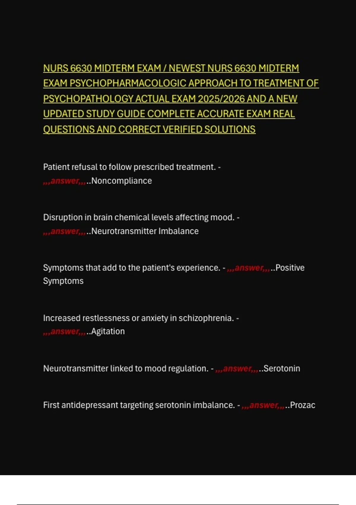 PSYCHOPATHOLOGY ACTUAL EXAM 2025/2026 AND A NEW