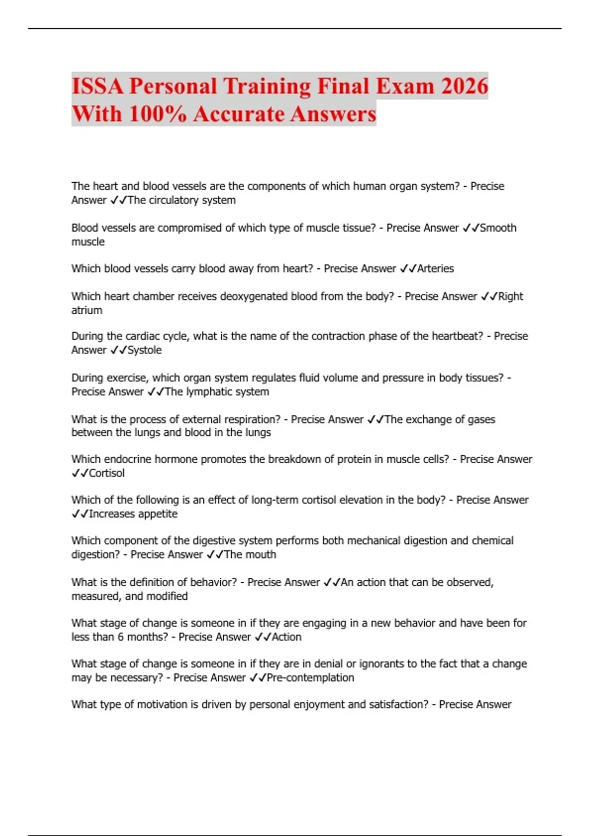 ISSA Personal Training Final Exam 2026 With 100% Accurate Answers