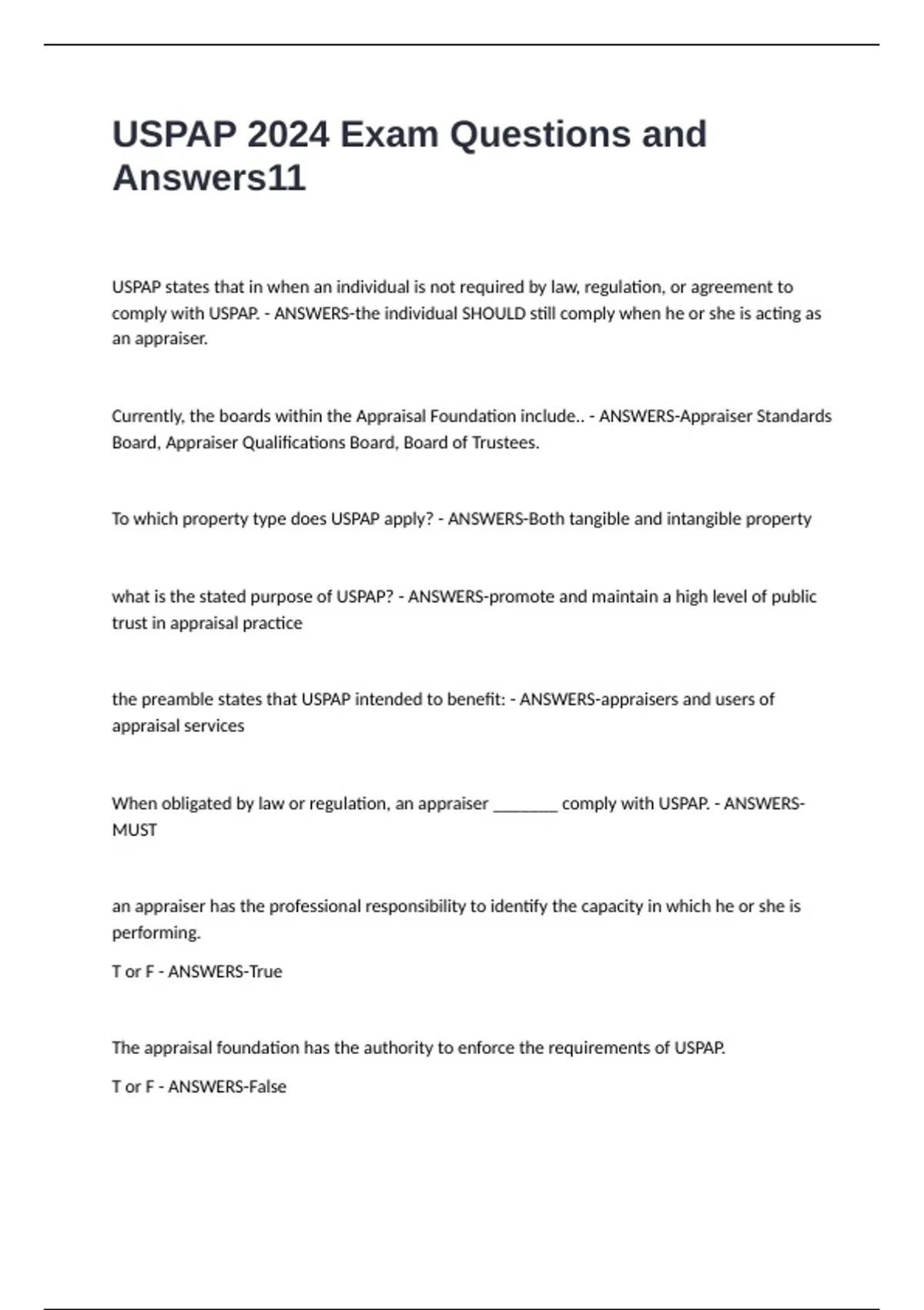 USPAP 2024 Exam Questions and Answers
