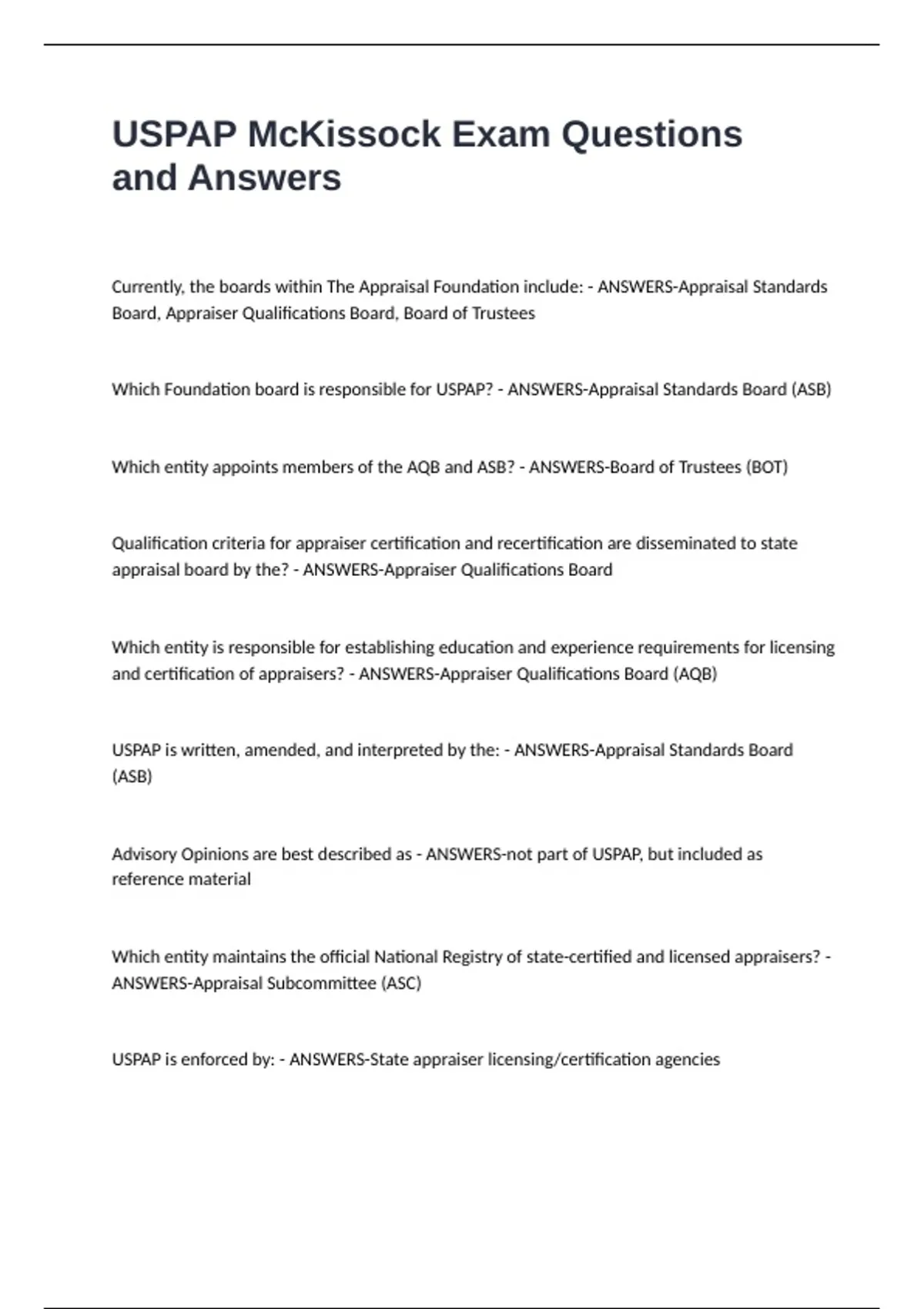 USPAP McKissock Exam Questions