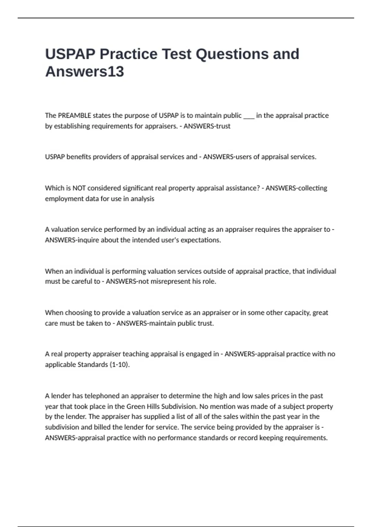 USPAP Practice Test Questions and Answers