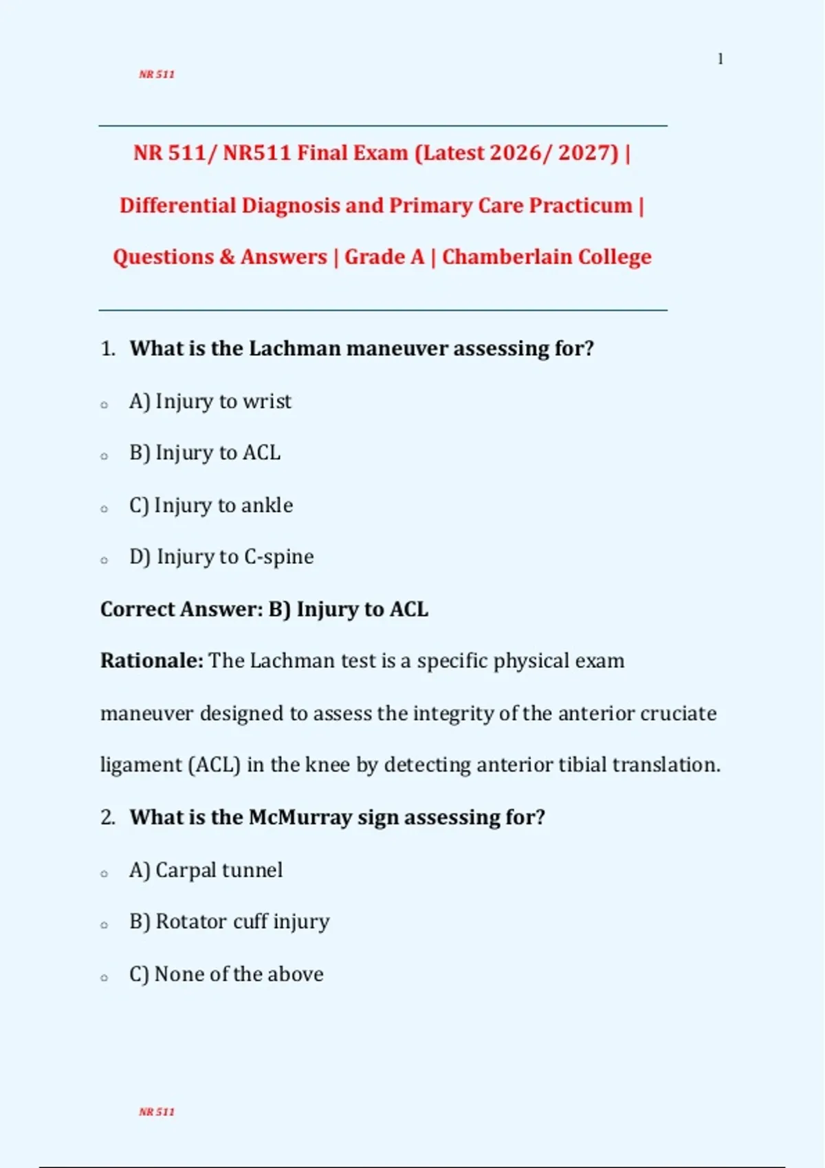 NR 511/ NR511 Final Exam (Latest 2026/ 2027) |