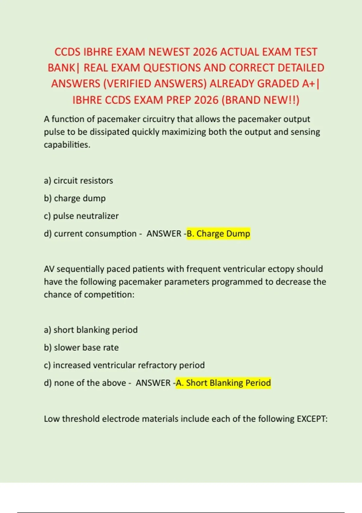 d) less sensitive ventricular sensitivity - ANSWER -B. "Safety Pacing"