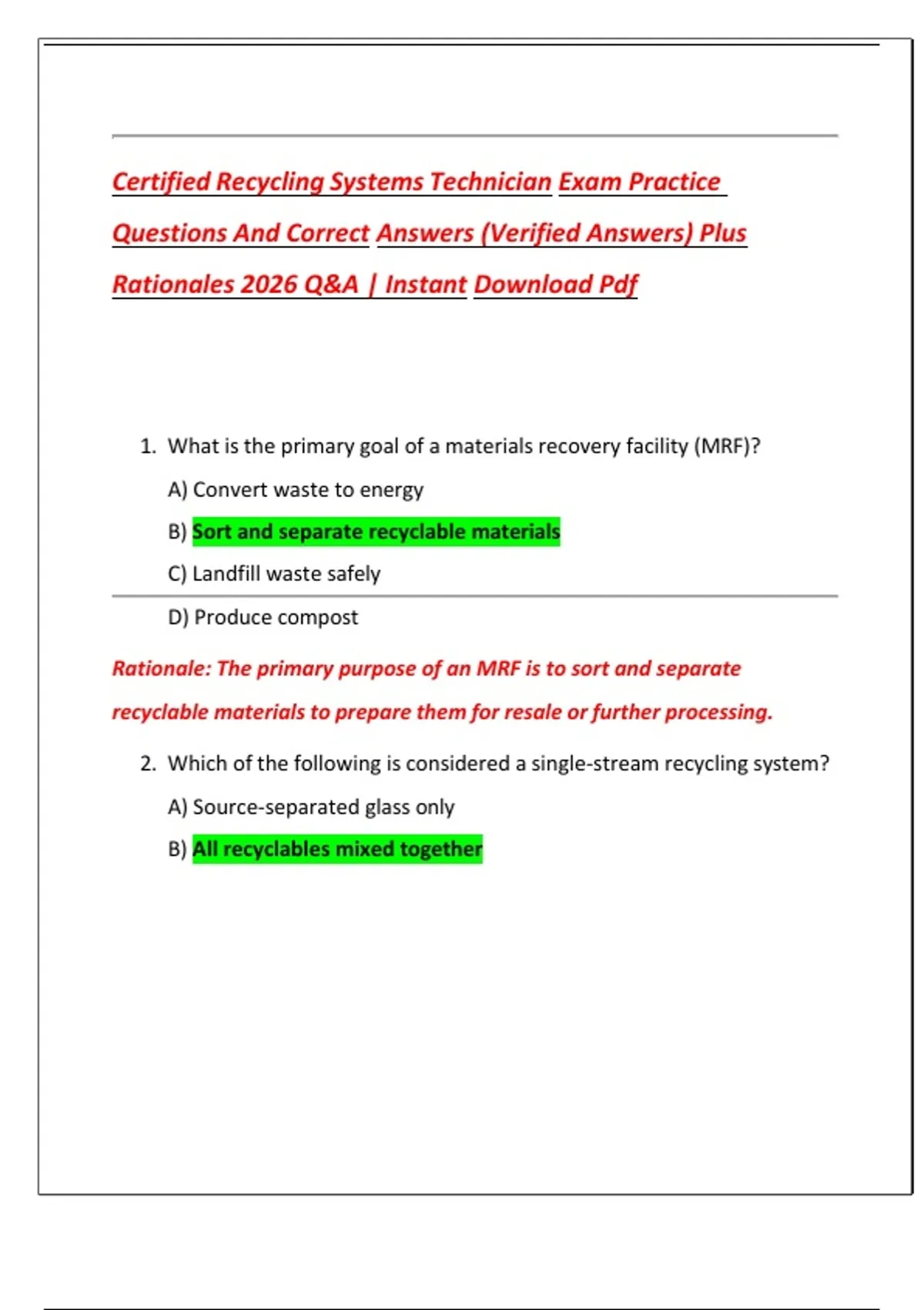 1. What is the primary goal of a materials recovery facility (MRF)?