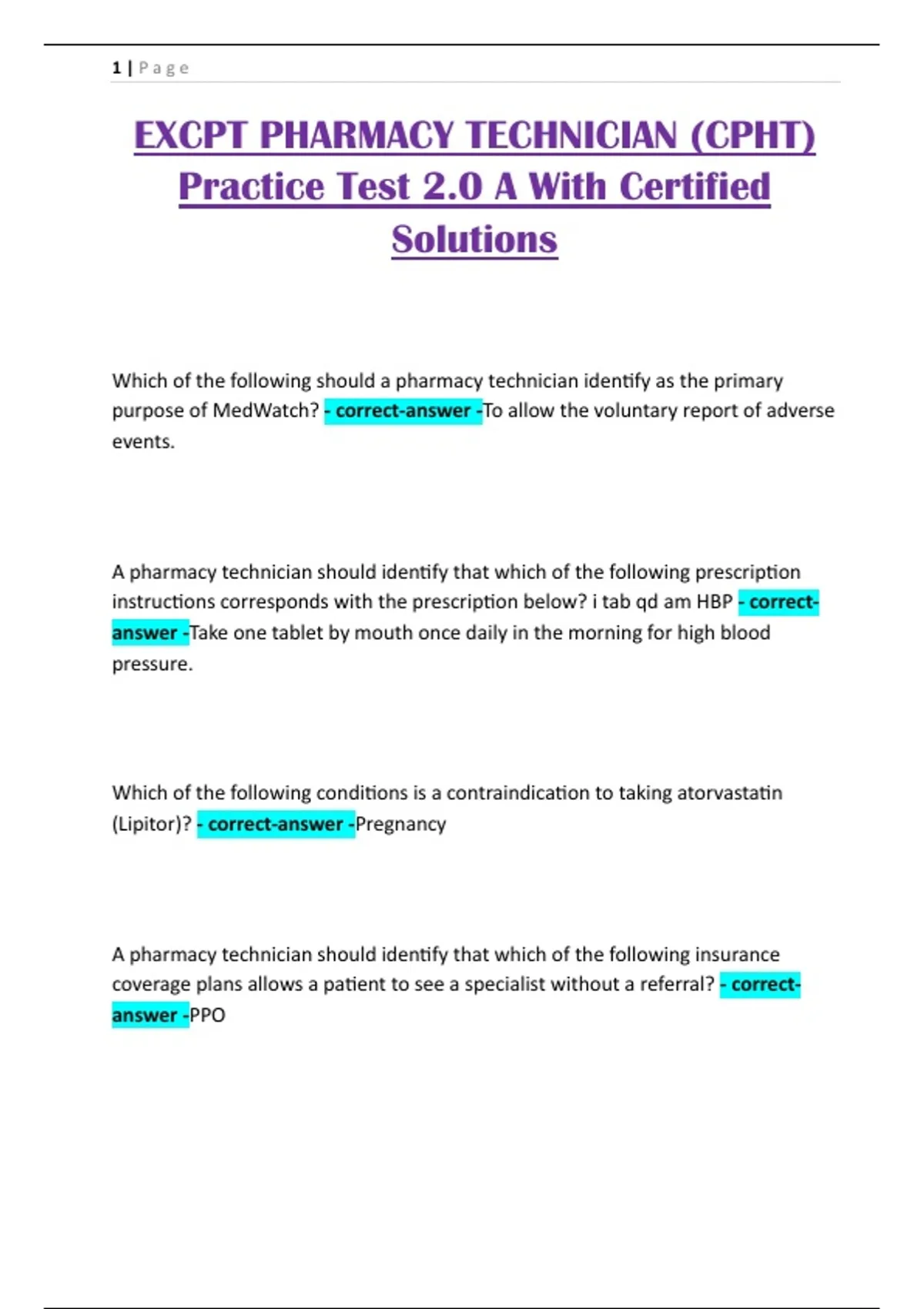 EXCPT PHARMACY TECHNICIAN (CPHT)