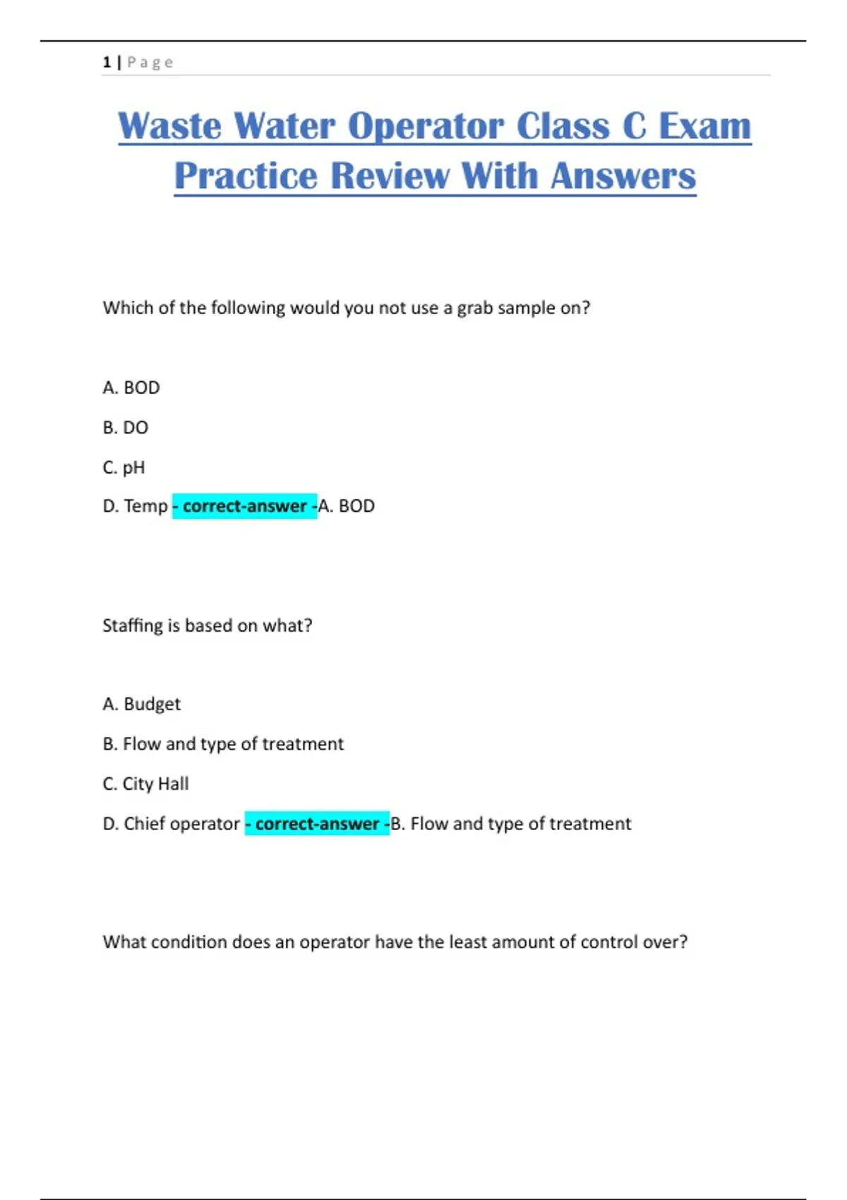 Waste Water Operator Class C Exam