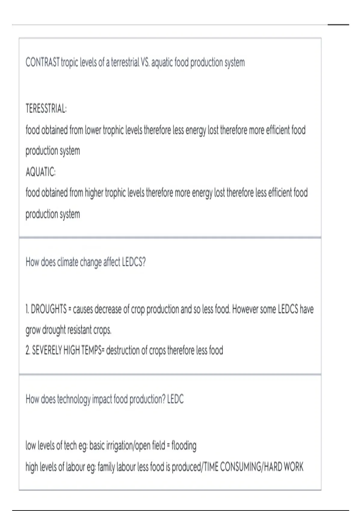 How does technology impact food production? LEDC