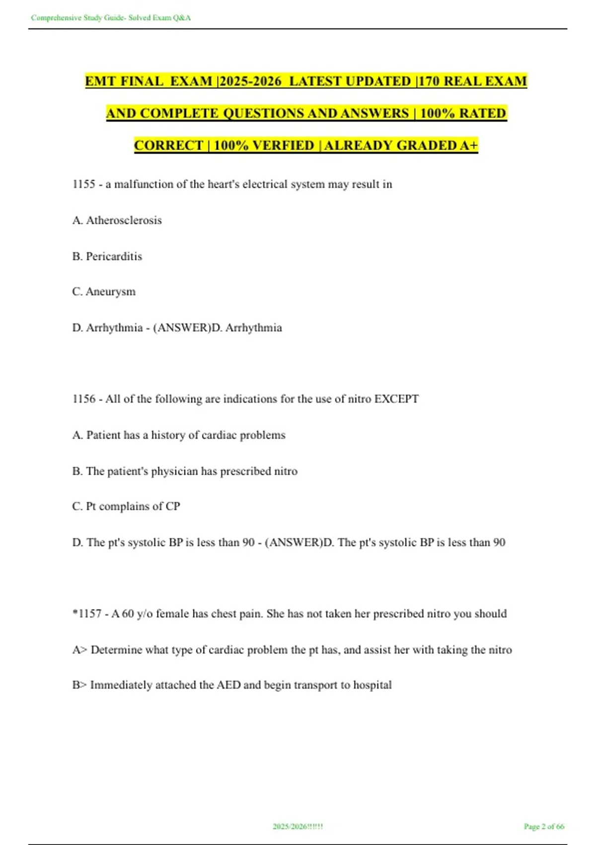 EMT FINAL EXAM |2025-2026 LATEST UPDATED |170 REAL EXAM