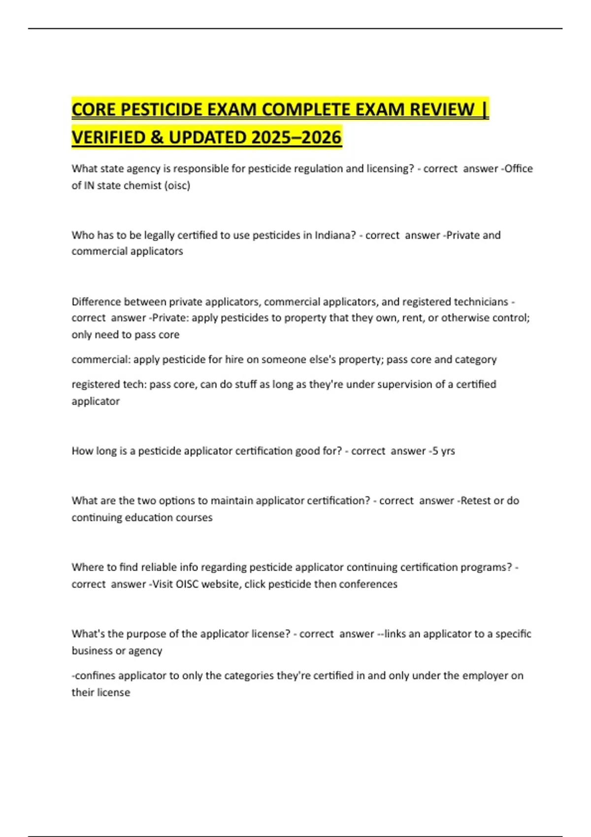CORE PESTICIDE EXAM COMPLETE EXAM REVIEW | VERIFIED & UPDATED 2025–2026