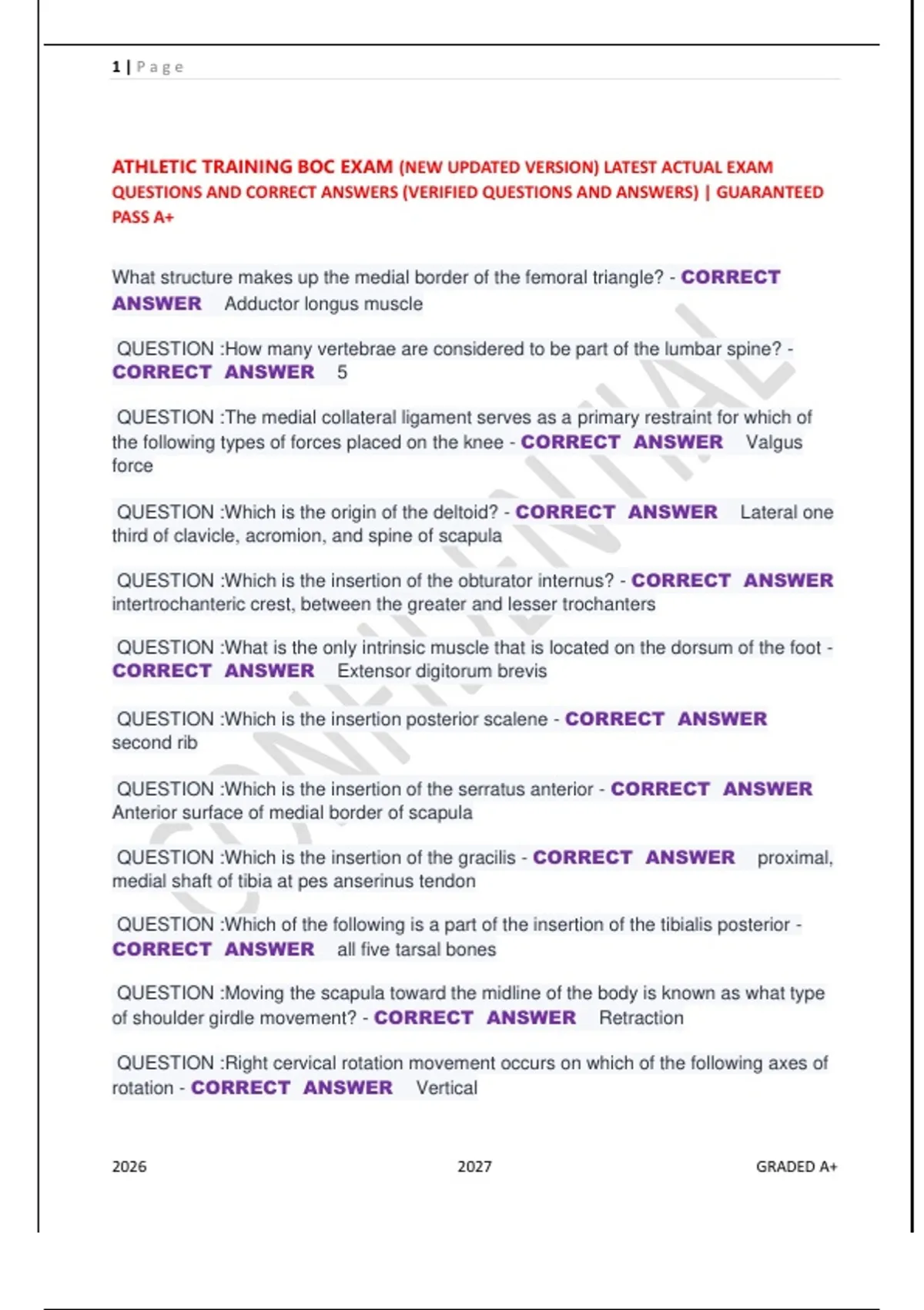 This Athletic Training BOC Exam Study Guide is updated for 2026–2027 and aligned with the latest BOC content areas. It includes comprehensive review notes, high-yield practice questions, and clear answer rationales to support effective exam preparation. Ideal for athletic training students and ATC candidates preparing for first-time or repeat testing.