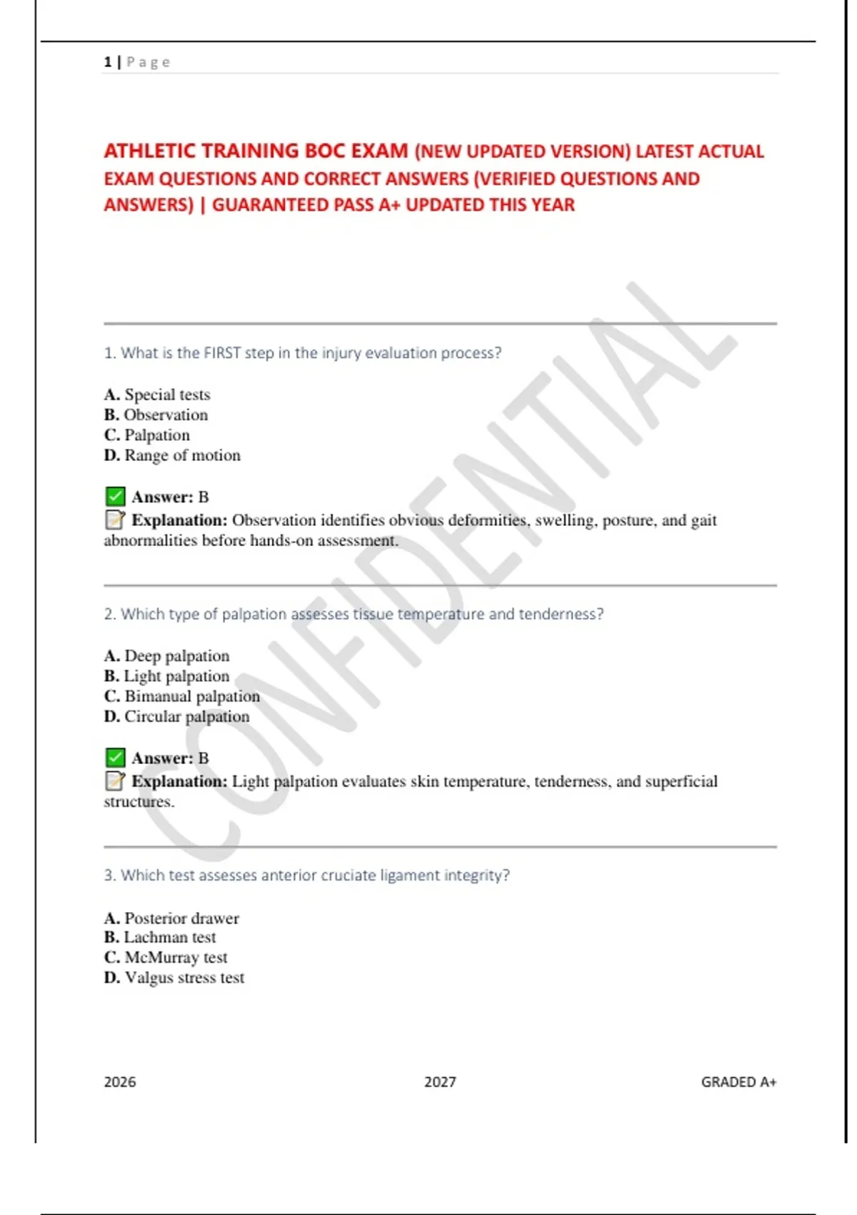 ATHLETIC TRAINING BOC EXAM (NEW UPDATED VERSION) LATEST ACTUAL