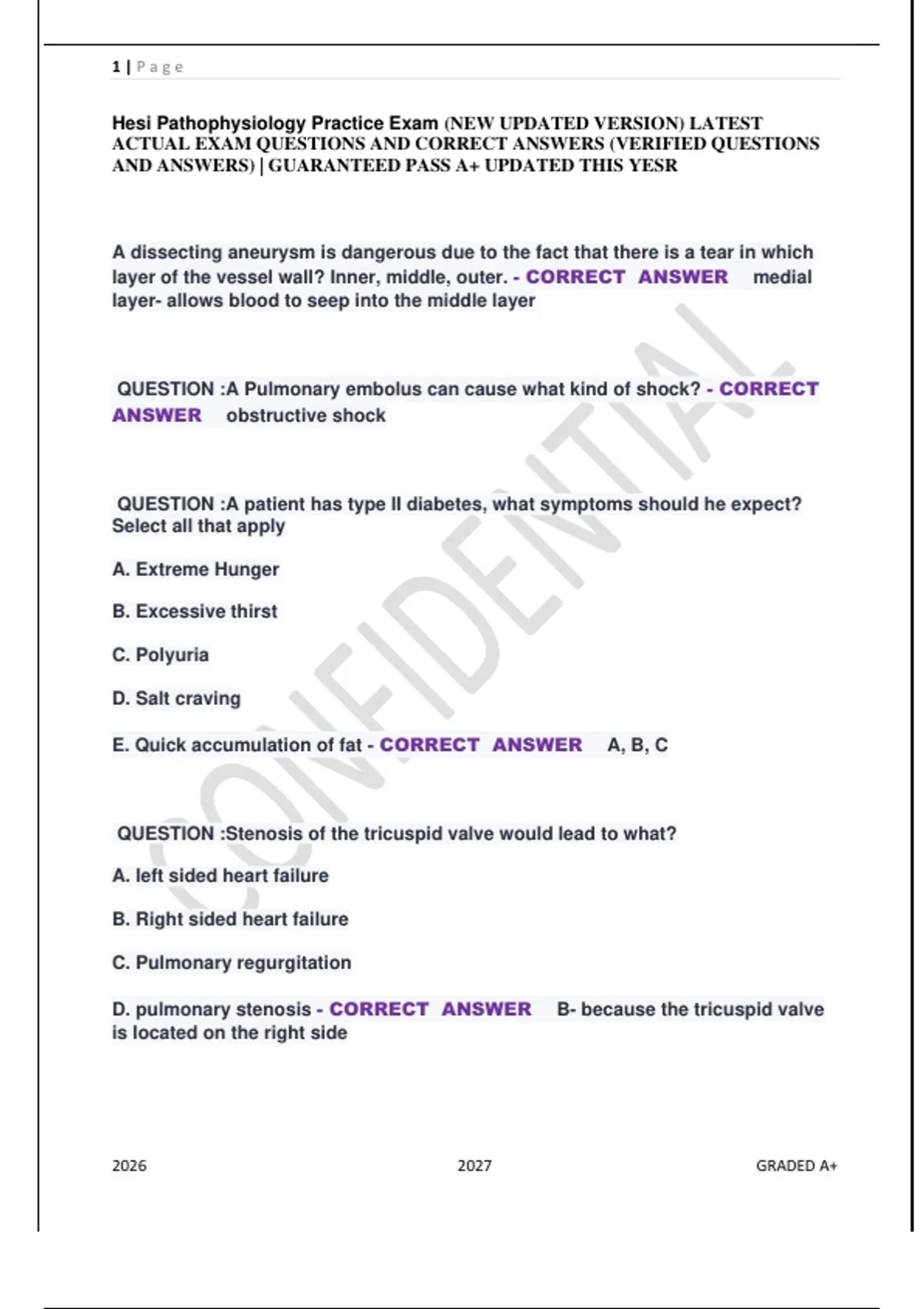 Hesi Pathophysiology Practice Exam (NEW UPDATED VERSION) LATEST