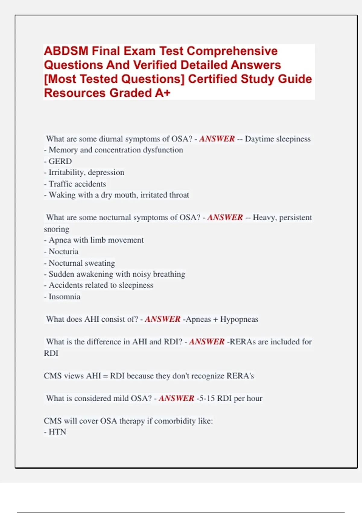 What is considered mild OSA? - ANSWER -5-15 RDI per hour