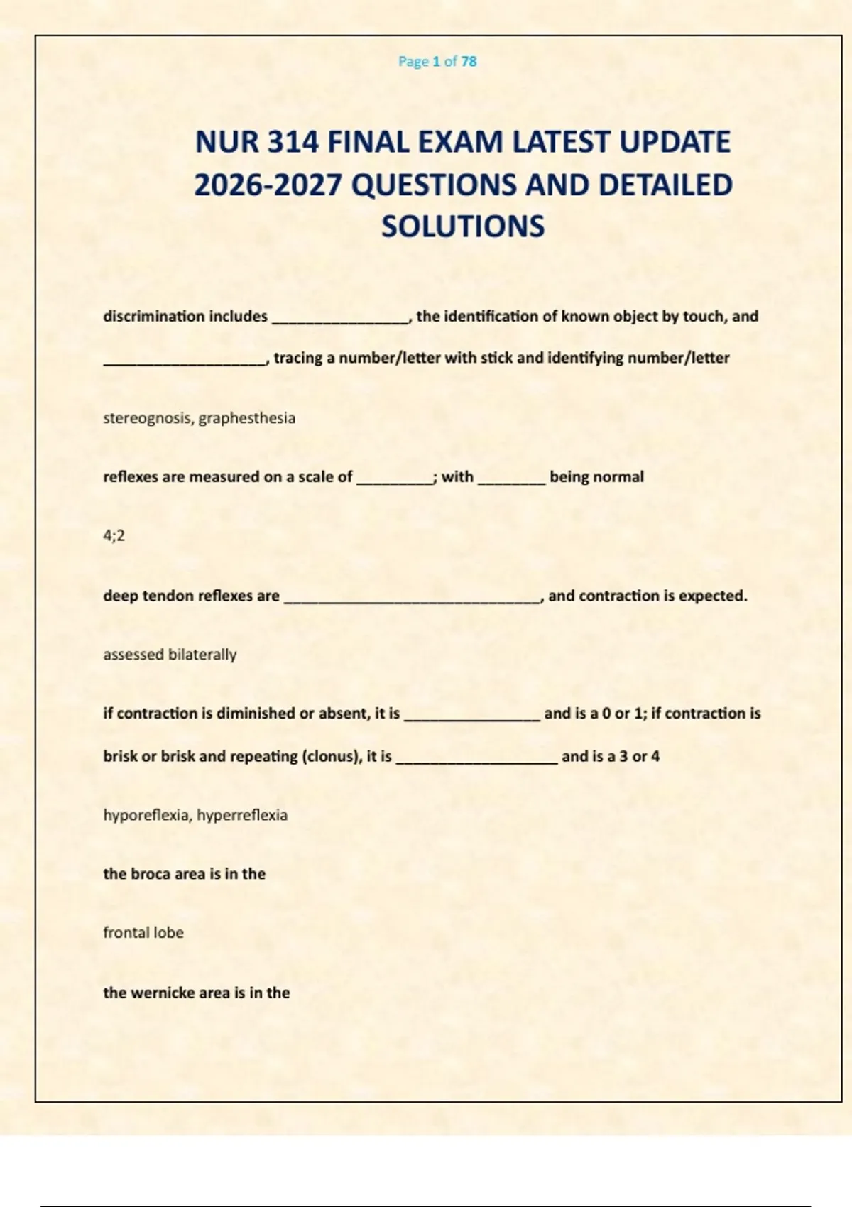NUR 314 FINAL EXAM LATEST UPDATE QUESTIONS AND DETAILED SOLUTIONS