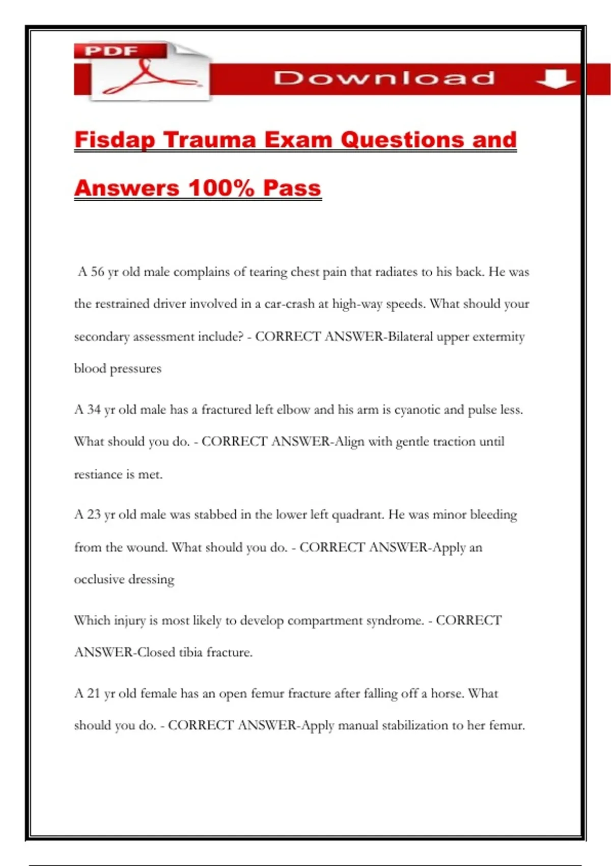 Fisdap Trauma Exam Questions and Answers 100% Pass