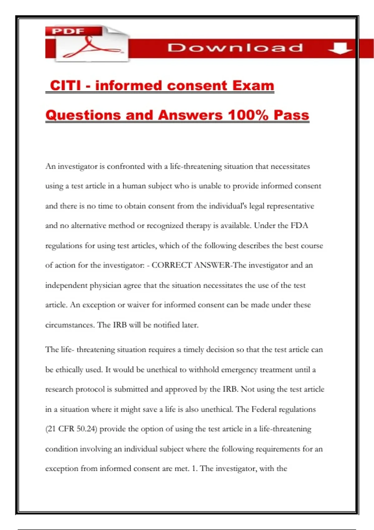 CITI - informed consent Exam Questions and Answers 100% Pass