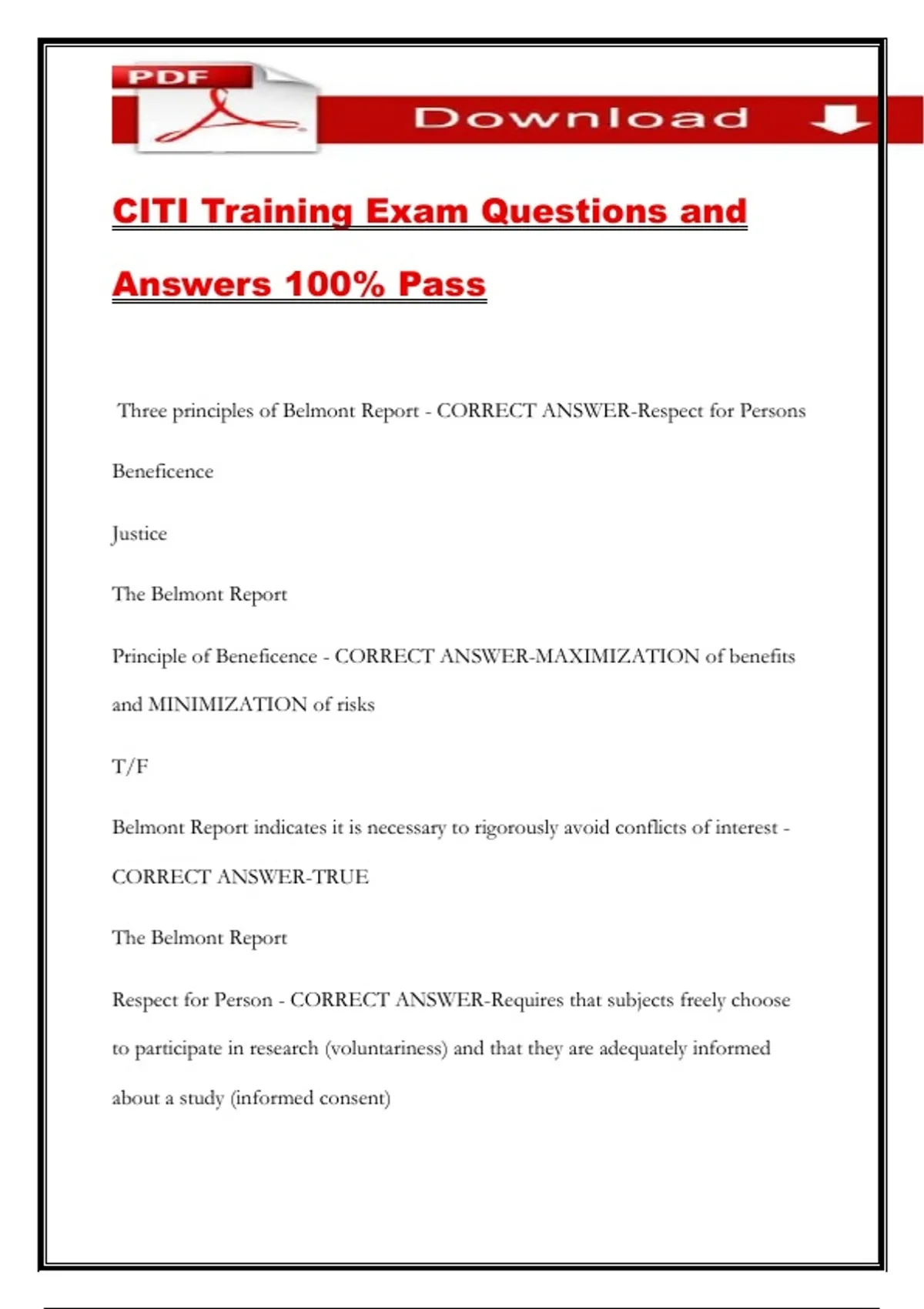 CITI Training Exam Questions and