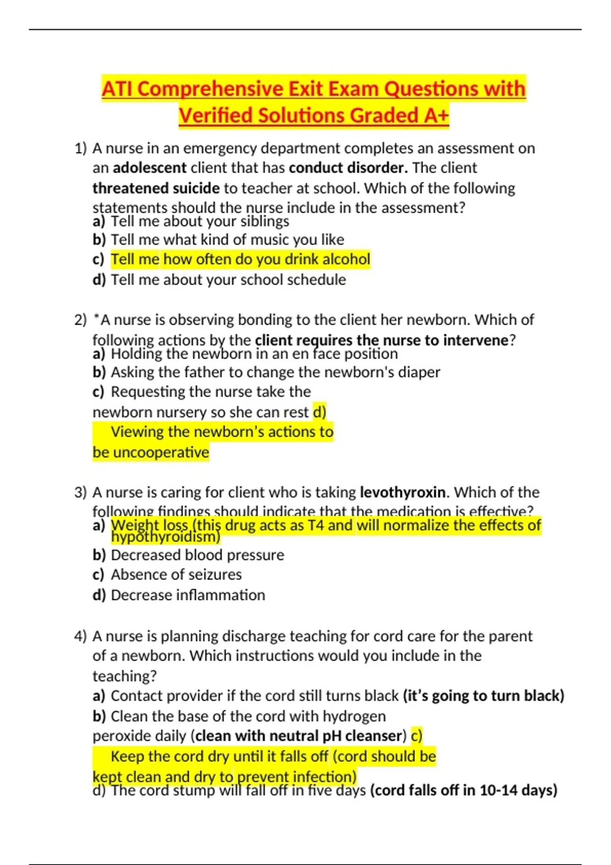 ATI Comprehensive Exit Exam Questions with