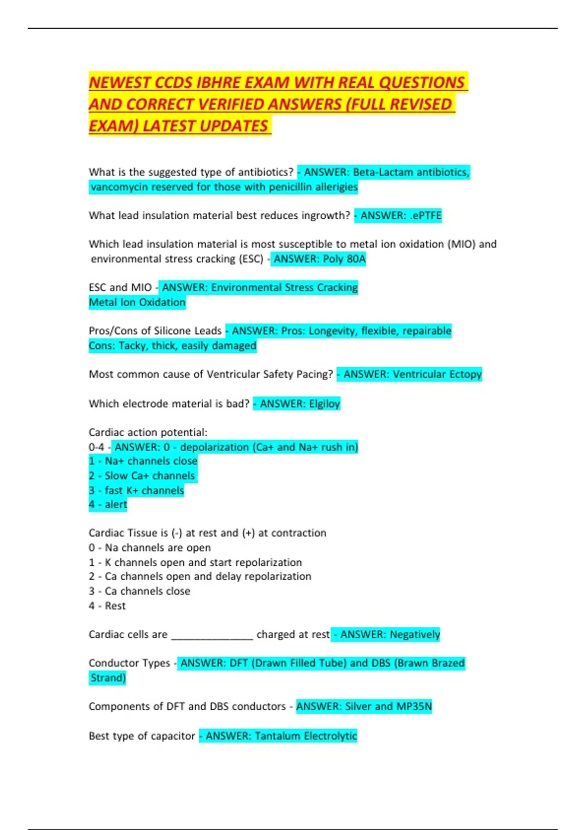 NEWEST CCDS IBHRE EXAM WITH REAL QUESTIONS AND CORRECT VERIFIED ANSWERS (FULL REVISED EXAM) LATEST UPDATES