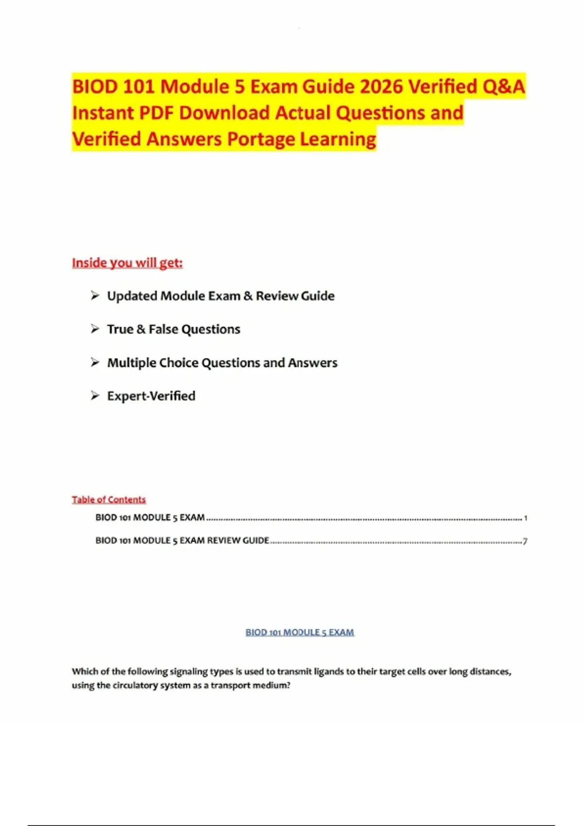 BIOD 101 Module 5 Exam Guide 2026 Verified Q&A Instant PDF Download Actual Questions and Verified Answers Portage Learning