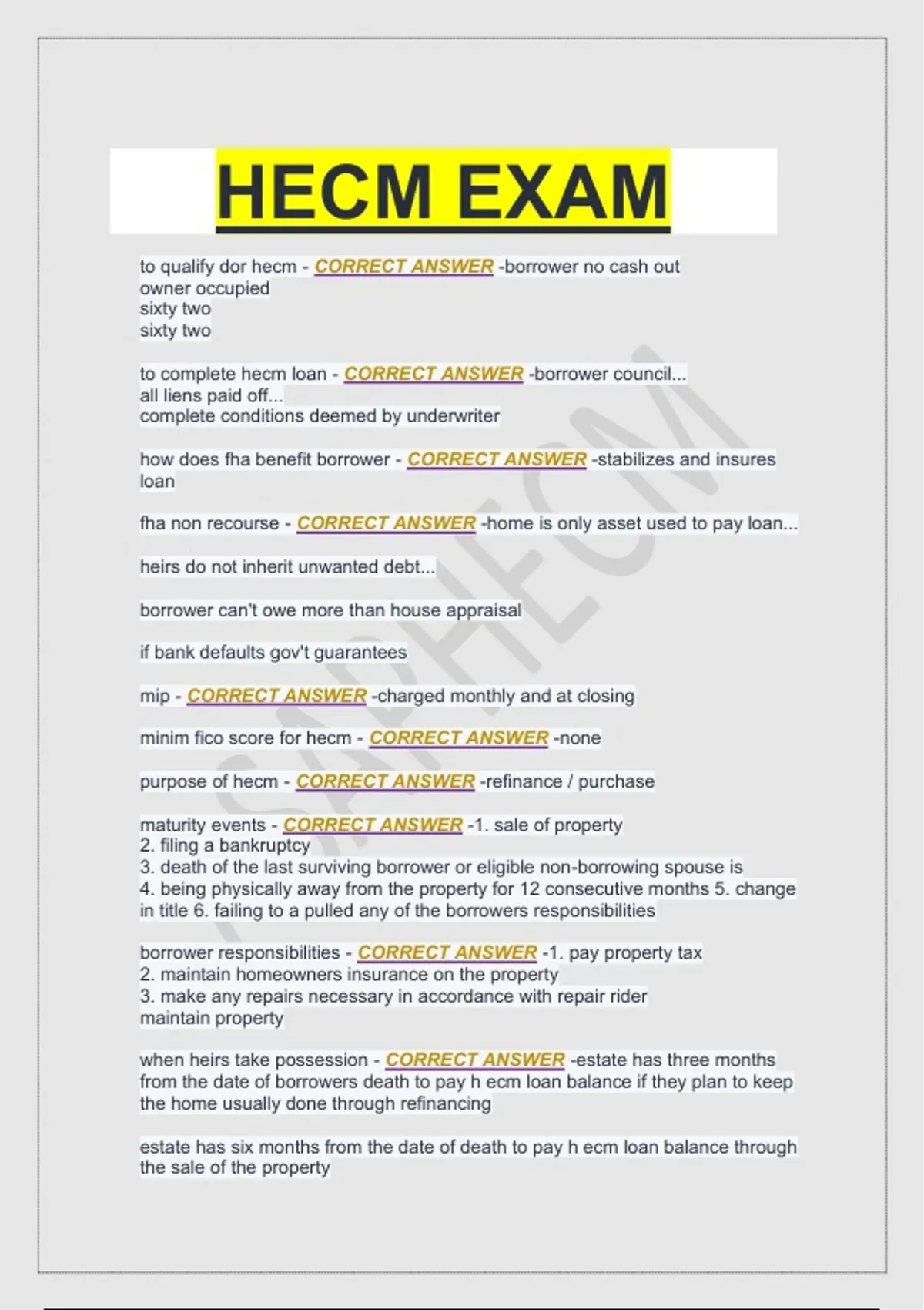 purpose of hecm - CORRECT ANSWER -refinance / purchase