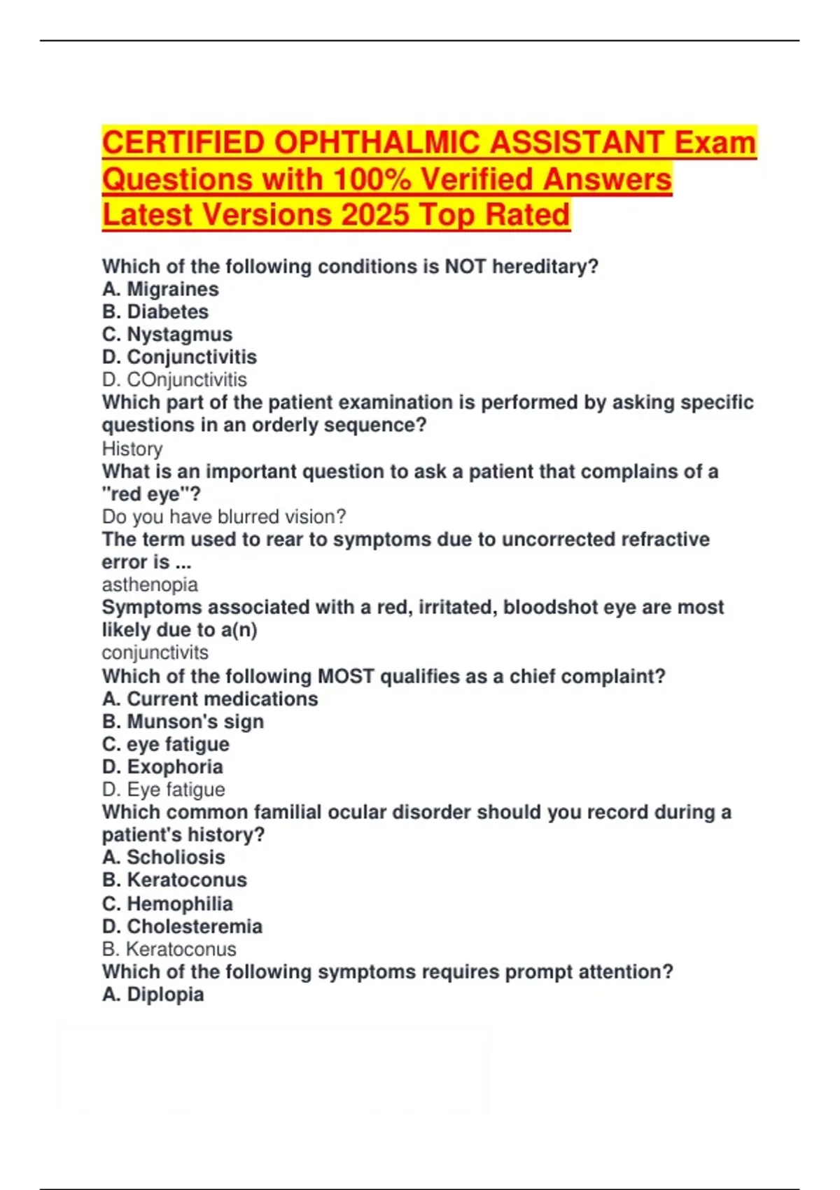 CERTIFIED OPHTHALMIC ASSISTANT Exam