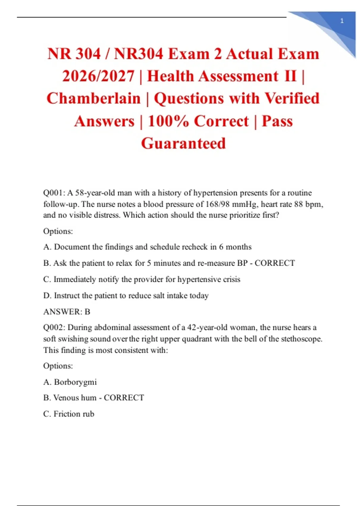 NR 304 / NR304 Exam 2 Actual Exam