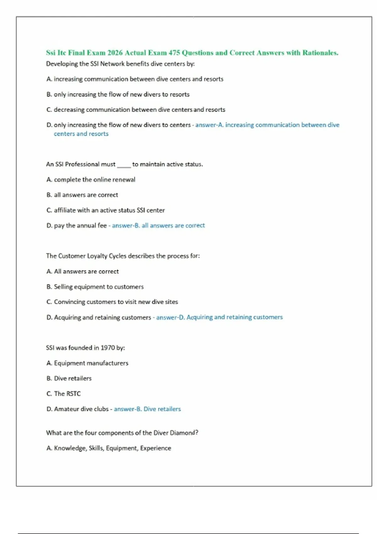 Ssi Itc Final Exam 2026 Actual Exam 475 Questions and Correct Answers with Rationales.