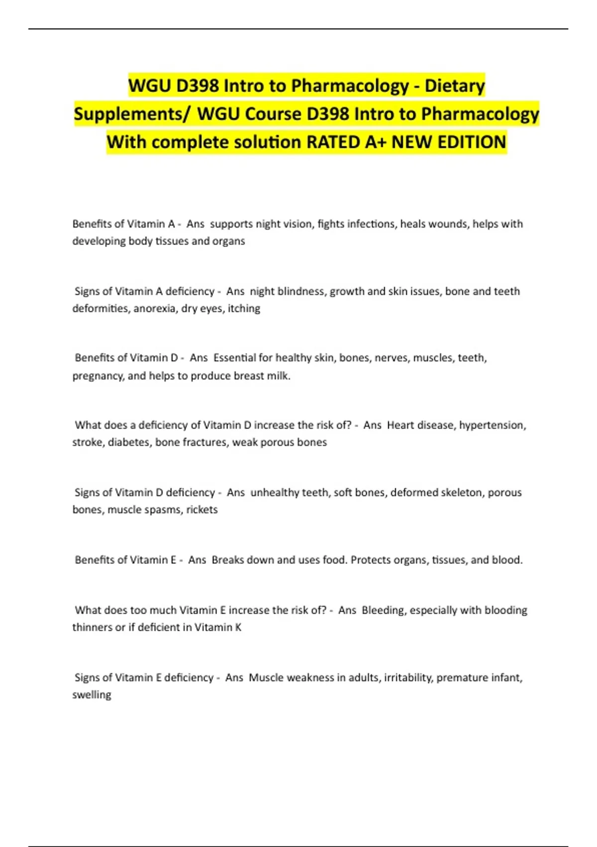 Supplements/ WGU Course D398 Intro to Pharmacology