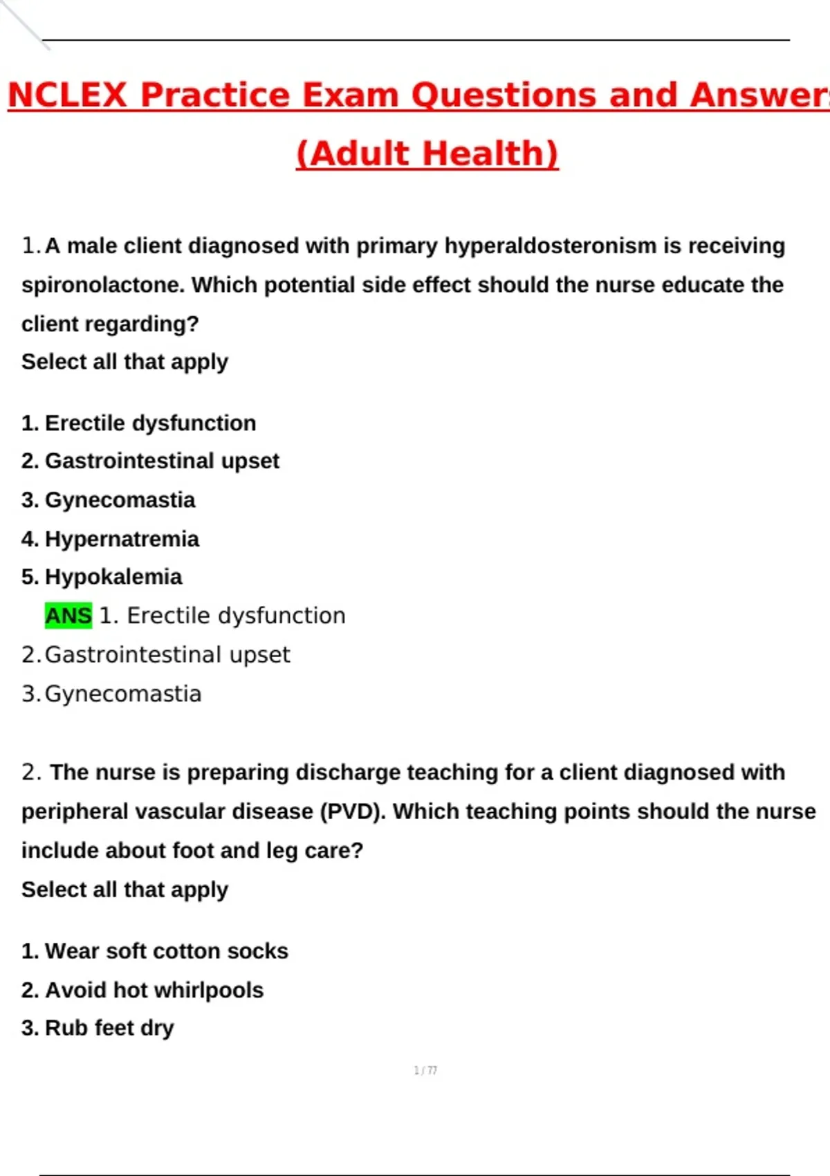 NCLEX Practice Exam Questions (Adult Health) Latest 2026 Actual Questions and Verified Answers (2026 / 2027) A+ Grade 100% Guarantee Verified by Experts. NCLEX practice questions with rationales, NCLEX exam questions and correct answers, NCLEX 2025 practice exam, NCLEX 2026 updated study guide, NCLEX OB maternity exam questions, NCLEX adult health practice questions, NCLEX medical surgical exam prep, NCLEX fundamentals of nursing questions, NCLEX fundamentals with rationales PDF, NCLEX nursing documentation practice, NCLEX psych exam practice questions, NCLEX mental health nursing test prep, NCLEX pharmacology questions with explanations, NCLEX antipsychotics anxiolytics antidepressants exam, NCLEX medication administration questions, NCLEX health assessment exam questions, NCLEX head to toe assessment practice, NCLEX management of care questions and answers, NCLEX leadership and delegation practice, NCLEX priority nursing questions, NCLEX infection control exam prep, NCLEX safety and risk reduction questions, NCLEX Mark Klimek review questions, NCLEX high yield exam questions, NCLEX comprehensive practice exam PDF, NCLEX mock exam with rationales, NCLEX NGN practice questions, NCLEX next generation case studies, NCLEX clinical judgment questions, NCLEX SATA questions practice, NCLEX readiness assessment test, NCLEX exam prep bundle 2025, NCLEX updated questions latest edition, NCLEX nursing exam study guide, NCLEX exam questions PDF download, NCLEX maternity and newborn questions, NCLEX psych medications review, NCLEX cardiovascular nursing questions, NCLEX respiratory nursing exam prep, NCLEX endocrine nursing practice, NCLEX renal nursing questions, NCLEX gastrointestinal nursing exam, NCLEX emergency nursing practice, NCLEX prioritization and delegation exam, NCLEX management of care exam prep, NCLEX final exam review guide, NCLEX last minute exam review, pass NCLEX first attempt, NCLEX full practice and prep guide, NCLEX US exam questions verified answers