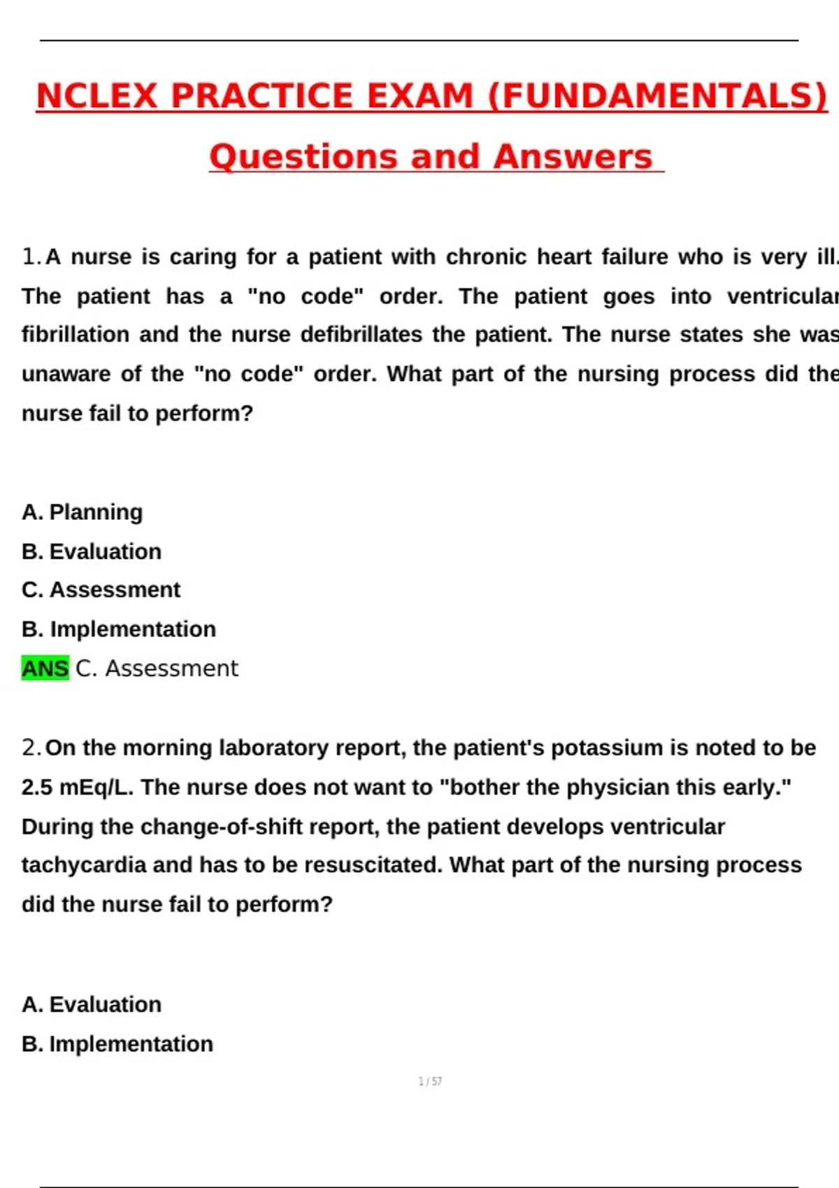 NCLEX Practice Exam Questions (Fundamentals) Latest 2026 Actual Questions and Verified Answers (2026 / 2027) A+ Grade 100% Guarantee Verified by Experts