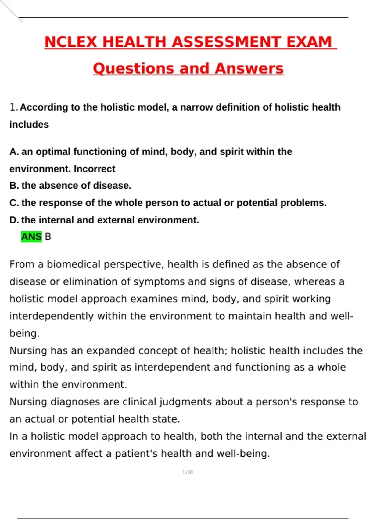 NCLEX Health Assessment Exam Questions Latest 2026 Actual Questions and Verified Answers (2026 / 2027) A+ Grade 100% Guarantee Verified by Experts. NCLEX practice questions with rationales, NCLEX exam questions and correct answers, NCLEX 2025 practice exam, NCLEX 2026 updated study guide, NCLEX OB maternity exam questions, NCLEX adult health practice questions, NCLEX medical surgical exam prep, NCLEX fundamentals of nursing questions, NCLEX fundamentals with rationales PDF, NCLEX nursing documentation practice, NCLEX psych exam practice questions, NCLEX mental health nursing test prep, NCLEX pharmacology questions with explanations, NCLEX antipsychotics anxiolytics antidepressants exam, NCLEX medication administration questions, NCLEX health assessment exam questions, NCLEX head to toe assessment practice, NCLEX management of care questions and answers, NCLEX leadership and delegation practice, NCLEX priority nursing questions, NCLEX infection control exam prep, NCLEX safety and risk reduction questions, NCLEX Mark Klimek review questions, NCLEX high yield exam questions, NCLEX comprehensive practice exam PDF, NCLEX mock exam with rationales, NCLEX NGN practice questions, NCLEX next generation case studies, NCLEX clinical judgment questions, NCLEX SATA questions practice, NCLEX readiness assessment test, NCLEX exam prep bundle 2025, NCLEX updated questions latest edition, NCLEX nursing exam study guide, NCLEX exam questions PDF download, NCLEX maternity and newborn questions, NCLEX psych medications review, NCLEX cardiovascular nursing questions, NCLEX respiratory nursing exam prep, NCLEX endocrine nursing practice, NCLEX renal nursing questions, NCLEX gastrointestinal nursing exam, NCLEX emergency nursing practice, NCLEX prioritization and delegation exam, NCLEX management of care exam prep, NCLEX final exam review guide, NCLEX last minute exam review, pass NCLEX first attempt, NCLEX full practice and prep guide, NCLEX US exam questions verified answers
