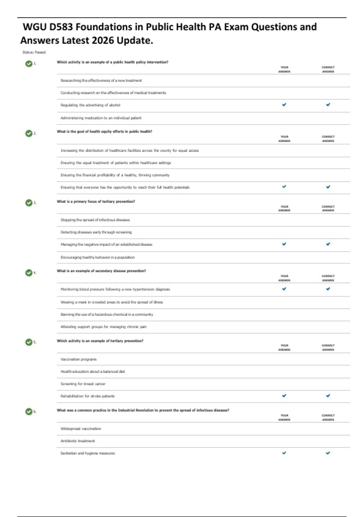 WGU D583 Foundations in Public Health PA Exam Questions and