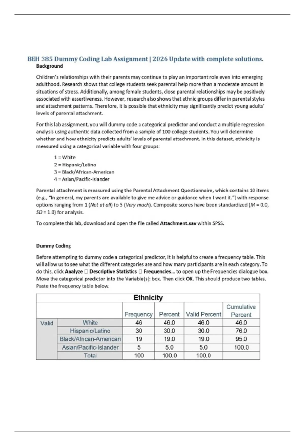 BEH 385 Dummy Coding Lab Assignment | 2026 Update with complete solutions.